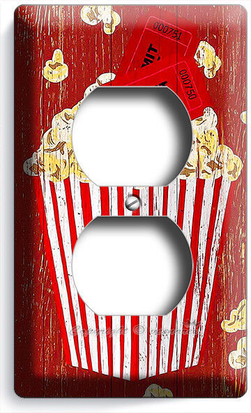 POPCORN TV ROOM HOME MOVIE THEATER CINEMA VINTAGE RUSTIC OUTLET ART WALL PLATES