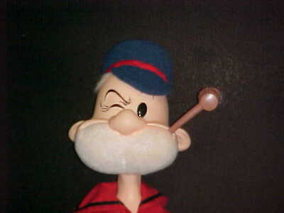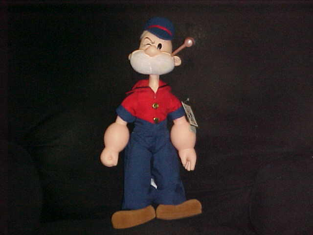 Hello everyone, Now at bottom of each of our item page is our word rating plush chart. Please check it out and read full item description before using the buy it now price. Ok here's an extremely rare very large Poopdeck Pappy Plush Doll With Tags By Presents From "Popeye", which is in excellent use condition. Poopdeck Pappy is wearing his clean royal blue and red outfit with matching sailor hat, brown fuzzy shoe feet, white beard, brown rubber pipe with white plush sticking out, rubber face, arms, ears and hands, hang tag attach to left side, and measures around 18-19 inches long. Body tush tag attach to outfit reads, Presents, 1985 King Features Syndicate, Inc. Please note this is use plush doll, so if you have asthma or sensitive to any kind of odors please do not buy from me. Please see picture's. Winner bidder pays by Zone and Zip Code for priority mail shipping (up to 3 lbs) with handling and insurance (3.25), plus required delivery confirmation US only. Sorry we do Not Ship to Canada or Internationally. Please only bid if you have a united states street address to ship to. Sorry but Immediate Paypal payment is required when using Buy It Now, E-Checks from Paypal are held 3-5 business days until it clears before item is ship. Since we are limited on our picture space, pic will be deleted after the end of auction, so if you would like to see pic after the auction, please print out picture before the auction ends. We due not do accept returns or any refunds, so Please read full item description, all sales are final and are sold as worded in item description, as this is an sale. All items are offer as is condition. I ship most of the time the following day after receiving your payment. Please take a moment and check out our other great Disney plush and character toys which are listed sale this week. New Rating Plush Chart. NEW: Comes from a factory or department store and has not played with. MINT Or LIKE-NEW: Looks new but might still been played with but shows no wear on the Plush itself but still might have a flaw (like a odor, etc., and might not been wash even though we strive very hard to make all our plush smell free but can not guaranteed them, this reply's to all word rating plush charts) EX. COND: Some minor play wear and might have some minor flaws which would be in the item description. VERY GOOD: Has been played with and has flaws. GOOD: Has been played with a lot. POOR: We try not to sell any real poor condition toys. Thank-You and Have A Fantastic Week