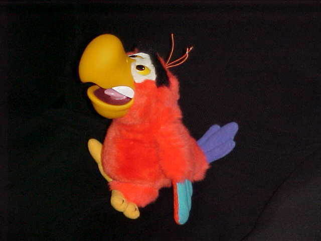 Hello everyone, Now at bottom of each of our item page is our word rating plush chart. Please check it out and read full item description before using the buy it now price. Ok here's a extremely rare large Disney Lago Parrot Puppet Plush Toy From Disney Classic "Aladdin", which is in excellent use condition. Lago is clean reddish body plush, tip purple back tail, rubber beak with with teeth mouth and pink tongue, shiny yellow with black eyes, orange hair strings on top of head, yellowish gold feet, black plush eye-brows, aqua blue tip wings and measures up around 12 inches long. Body tush seam tag only reads, The Walt Disney Company. Please see picture's. Winner bidder pays by Zone and Zip Code for priority mail shipping (up to 2 lbs) with handling and delivery confirmation of (2.55), US only. Sorry we do Not Ship to Canada or Internationally. Please only bid if you have a united states street address to ship to. Sorry but Immediate Paypal payment is required when using Buy It Now , E-Checks from Paypal are held 3-5 business days until it clears before item is ship. Since we are limited on our picture space, pic will be deleted after the end of auction, so if you would like to see pic after the auction, please print out picture before the auction ends. We due not do accept returns, so Please read full item description, all sales are final and are sold as worded in item description. All items are offer as is condition. We ship as soon as payment arrives. Please take a moment and check out our other great Disney plush and character toys which are listed sale this week. New Rating Plush Chart. NEW: Comes from a factory or department store and has not played with. MINT Or LIKE-NEW: Looks new but might still been played with but shows no wear on the Plush itself but still might have a flaw (like a odor, etc., and might not been wash even though we strive very hard to make all our plush smell free but can not guaranteed them, this reply's to all word plush rating charts) EX. COND: Some minor play wear and might have some minor flaws which would be in the item description. VERY GOOD: Has been played with and has flaws. GOOD: Has been played with a lot. POOR: We try not to sell any real poor condition toys. Thank-You and Have A Fantastic Week