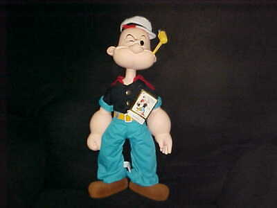 Hello everyone, Now at bottom of each of our item page is our word rating plush chart. Please check it out and read full item description before using the buy it now price. Ok here's an extremely rare very large Popeye Plush Doll With Tags By Presents From "Popeye", which is in very good to excellent use condition. Popeye is wearing his clean black shirt with blue trim, red collar, blue pants with yellow belt and white buckle, top white and black sailor hat with red plush hair sticking out on right side, brown fuzzy shoe feet, yellow rubber pipe with white plush sticking out, rubber face and arms and hands (faded ink spot on top of right ear and two on back of right arm), hang tag attach to left side, and measures around 18-19 inches long. Body tush tag attach to outfit reads, Presents, 1987 King Features Syndicate, Inc. Please note this is use plush doll, so if you have asthma, etc please do not buy from me. Please see picture's. Winner bidder pays by Zone Zip Code for priority mail shipping (up to 3 lbs) with handling and insurance (3.25), plus required delivery confirmation US only. Sorry we do Not Ship to Canada or Internationally. Please only bid if you have a united states street address to ship to. Sorry but Immediate Paypal payment is required when using Buy It Now, E-Checks from Paypal are held 3-5 business days until it clears before item is ship. Since we are limited on our picture space, pic will be deleted after the end of auction, so if you would like to see pic after the auction, please print out picture before the auction ends. We due not do accept returns or any refunds, so Please read full item description, all sales are final and are sold as worded in item description, as this is an sale. All items are offer as is condition. I ship most of the time the following day after receiving your payment. Please take a moment and check out our other great Disney plush and character toys which are listed sale this week. New Rating Plush Chart. NEW: Comes from a factory or department store and has not played with. MINT Or LIKE-NEW: Looks new but might still been played with but shows no wear on the Plush itself but still might have a very slight minor flaw (like a slight odor, etc., and might not been wash even though we strive very hard to make all our plush smell free but can not guaranteed them, this reply's to all word rating plush charts) EX. COND: Some minor play wear and might have some minor flaws which would be in the item description. VERY GOOD: Has been played with and has flaws. GOOD: Has been played with a lot. POOR: We try not to sell any real poor condition toys. Thank-You Have A Fantastic Week