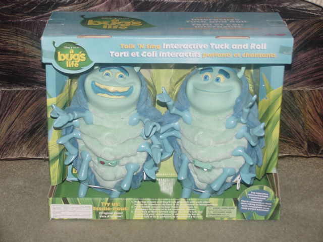 Hello everyone, Now at bottom of each of our item page is our word rating plush chart. Please check it out and read full item description before using the buy it now price. Ok here's adorable very rare large pair of Interactive Tuck and Roll Plush Toys From Pixar/Disney "A Bug's Life", which both work perfect, comes with batteries, and are mint use condition with box. Have never been taken out of box since purchase. Both talk, sing and shake vibrating sounds. Each has blue and green body's with side zipper battery departments, hard rubber blue hands and feet, rubber green top antenna's and each measure around 12 inches long inside of box. Both have their tush body tags which reads, Thinkway Toys. Box measures 14 1/4 inches wide and 12 inches tall By Thinkway Toys. Please see picture. Winner bidder pays by Zone and Zip Code for parcel select ground large box shipping (up to 7 lbs weigh almost 5 lbs without putting them inside mailing box) with handling of (1.50 h-fee), plus required (.85) delivery confirmation US only. Sorry we do Not Ship to Canada or Internationally. Please only bid if you have a united states street address to ship to. Sorry but Immediate Paypal payment is required when using Buy It Now, E-Checks from Paypal are held 3-5 business days until it clears before item is ship. Since we are limited on our picture space, pic will be deleted after the end of auction, so if you would like to see pic after the auction, please print out picture before the auction ends. We due not do accept returns, so Please read full item description, all sales are final and are sold as worded in item description, as this is an sale. All items are offer as is condition. We ship only once or twice a week. Please take a moment and check out our other great Disney plush and character toys which are listed sale this week. New Rating Plush Chart. NEW: Comes from a factory or department store and has not played with. MINT Or LIKE-NEW: Looks new but might still been played with but shows no wear on the Plush itself but still might have a flaw (like a odor, etc., and might not been wash even though we strive very hard to make all our plush smell free but can not guaranteed them) EX. COND: Some minor play wear and might have some minor flaws which would be in the item description. VERY GOOD: Has been played with and has flaws. GOOD: Has been played with a lot. POOR: We try not to sell any real poor condition toys. Thank-You and Have A Fantastic Week