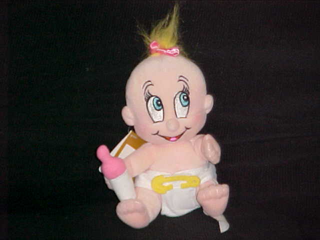 Hello everyone, Now at bottom of each of our item page is our word rating plush chart. Please check it out and read full item description before using the buy it now price. Ok here's adorable Baby Herman Bean Bag Plush Toy With Tags, which is in mint use condition. Baby Herman so cute holding his bottle and wearing white diaper with yellow safety pin. Pellet filled, hang tag attach to right ear and measures 6 inches. Tush and hang tags reads, The Disney Store. Please see picture's Winner bidder pays by Zone and Zip Code for priority mail shipping (up to 1 lb) with handling of (1.50 h-fee), plus required delivery confirmation US only. Sorry we do Not Ship to Canada or Internationally. Please only bid if you have a united states street address to ship to. Sorry but Immediate Paypal payment is required when using Buy It Now , E-Checks from Paypal are held 3-5 business days until it clears before item is ship. Since we are limited on our picture space, pic will be deleted after the end of auction, so if you would like to see pic after the auction, please print out picture before the auction ends. We due not do accept returns, so Please read full item description, all sales are final and are sold as worded in item description, as this is an legal auction. We ship as soon as payment arrives. Please take a moment and check out our other great Disney plush and character toys which are listed sale this week. New Rating Plush Chart. NEW: Comes from a factory or department store and has not played with. MINT Or LIKE-NEW: Looks new but might still been played with but shows no wear on the Plush itself but still might have a flaw (like a odor, etc., and might not been wash even though we strive very hard to make all our plush smell free but can not guaranteed them) EX. COND: Some minor play wear and might have some minor flaws which would be in the item description. VERY GOOD: Has been played with and has flaws. GOOD: Has been played with a lot. POOR: We try not to sell any real poor condition toys. Thank-You and Have A Fantastic Week