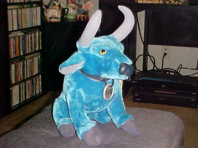 Hello everyone, Now at bottom of each of our item page is our word rating plush chart. Please check it out and read full item description before using the buy it now price. Ok here's a extremely rare large Babe Ox Plush Toy With Tags From "Tall Tale" which is in very good to excellent use condition. Babe Ox is blue plush, grey horns, black charcoal nose and feet, medal nose ring, yellow eyes, black collar with name id on front side (reads on back if found return to Paul Bunyan), grey plush tail, hang tag (middle bad crease) attach to left ear and sits up around 14 inches tall. Body seam tag reads, Made Exclusively for The Walt Disney Company. Please see picture. Winner bidder pays by priority mail (up to 2 lbs) US Only plus (2.35 for handling and delivery confirmation). Sorry we do Not Ship to Canada or Internationally. Please only bid if you have a united states street address to ship to. Sorry but Immediate Paypal payment is required when using Buy It Now. Paying by E-Check item is hold for 3-5 business days to clear before being ship. Since we are limited on our picture space, pic will be deleted after the end of auction, so if you would like to see pic after the auction, please print out picture before the auction ends. We due not do accept returns or refunds, so Please read full item description, all sales are final and are sold as worded in item description, as this is an legal binding auction and all listings are sold as is. We ship most of the time the following day after receiving payment. Please take a moment and check out our other great Disney plush and character toys which are listed sale this week. New Rating Plush Chart. NEW: Comes from a factory or department store and has not played with. MINT Or LIKE-NEW: Looks new but might still been played with but shows no wear on the Plush itself but still might have a flaw (like a odor, etc., and might not been wash even though we strive very hard to make all our plush smell free but can not guaranteed them) EX. COND: Some minor play wear and might have some minor flaws which would be in the item description. VERY GOOD: Has been played with and has flaws. GOOD: Has been played with a lot. POOR: We try not to sell any real poor condition toys. Thank-You Have A Fantastic Week