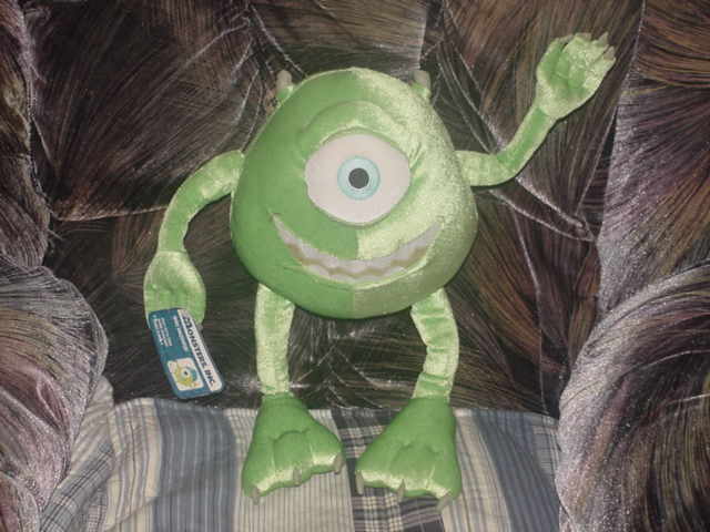 Hello everyone, Now at bottom of each of our item page is our word rating plush chart. Please check it out and read full item description before using the buy it now price. Ok here's adorable large Poseable Mike Wazowski Plush Toy From Disney/Pixar "Monsters Inc.", with tags and is in very good use condition. Mike is clean bright smooth green poseable plush, stitch center eye, big grin mouth, top grey horns, fingers and toes, hang tag (creases and wear) attach to right hand and measures around 15 inches long. Tush body tag reads, Disney Store. Please see picture. Winner bidder pays by Zone and Zip Code for priority mail shipping (up to 2 lbs) and handling (1.50), plus required (.85) delivery confirmation US only. Sorry we do Not Ship to Canada or Internationally. Please only bid if you have a united states street address to ship to. I'm Sorry but I have to Use Immediate payment by Paypal when buyer uses Buy It Now, E-Checks from Paypal are held 3-5 business days until it clears before item is ship. Since we are limited on our picture space, pic will be deleted after the end of auction, so if you would like to see pic after the auction, please print out picture before the auction ends. We due not do returns, so Please read full item description, all sales are final and are sold as worded in item description. All items are offer as is condition. I sell mostly vintage rare items which most haven't been manufactured in 10, 20, 30 + years. Please take a moment and check out our other great Disney plush and character toys which are listed sale this week. New Rating Plush Chart. NEW: Comes from a factory or department store and has not played with. MINT Or LIKE-NEW: Looks new but might still been played with but shows no wear on the Plush itself but still might have a flaw (like a odor, etc., and might not been wash even though we strive very hard to make all our plush smell free but can not guaranteed them) EX. COND: Some minor play wear and might have some minor flaws which would be in the item description. VERY GOOD: Has been played with and has flaws. GOOD: Has been played with a lot. POOR: We try not to sell any real poor condition toys. Thank-You and Have A Fantastic Week
