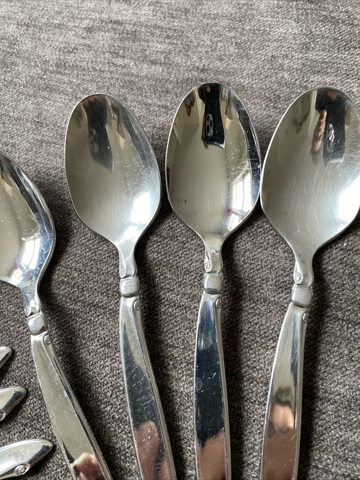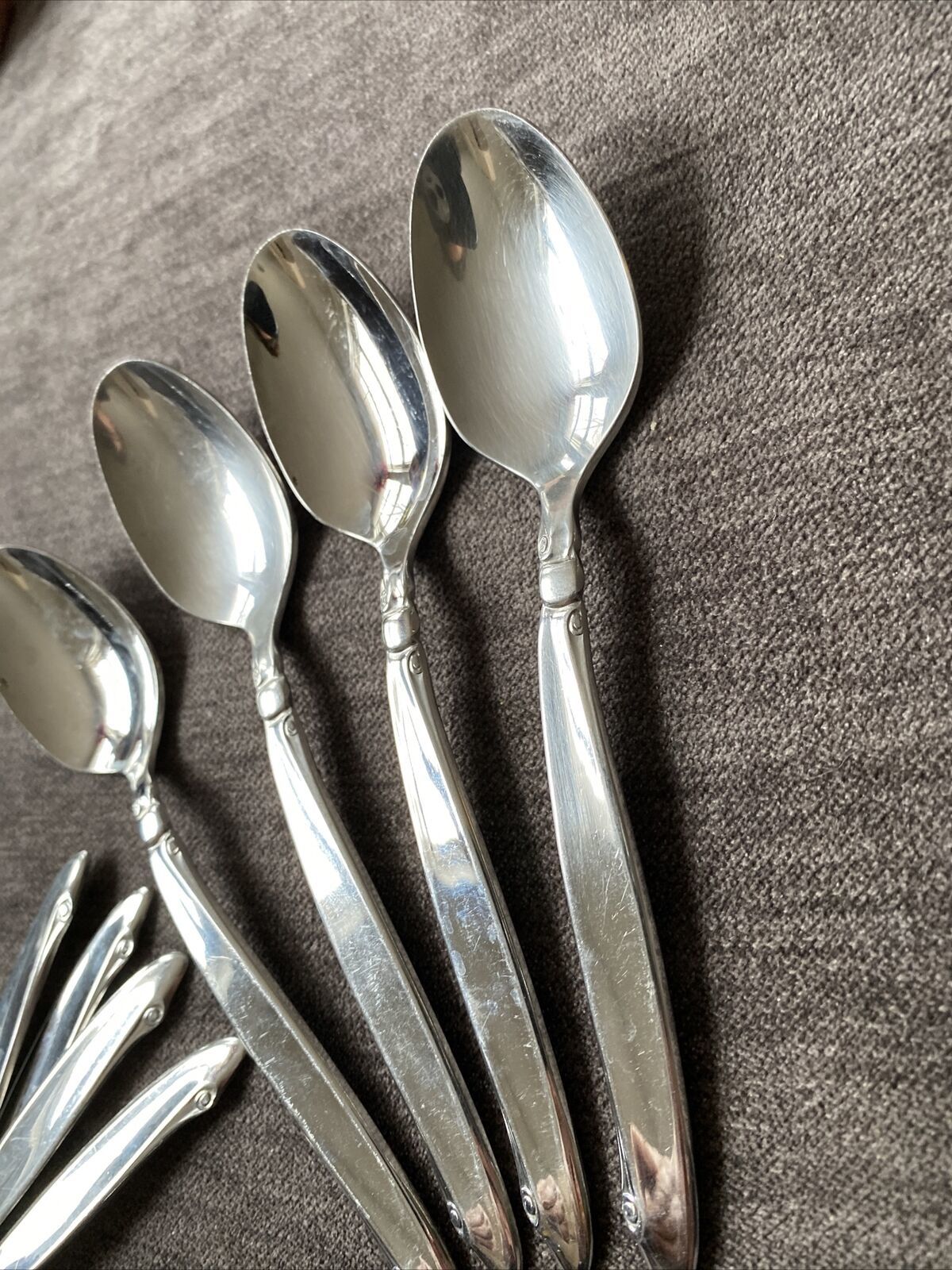 4! Oneida Community FireBird Shoreline Stainless Teaspoon 6 1/8" 2 Sets Ava.