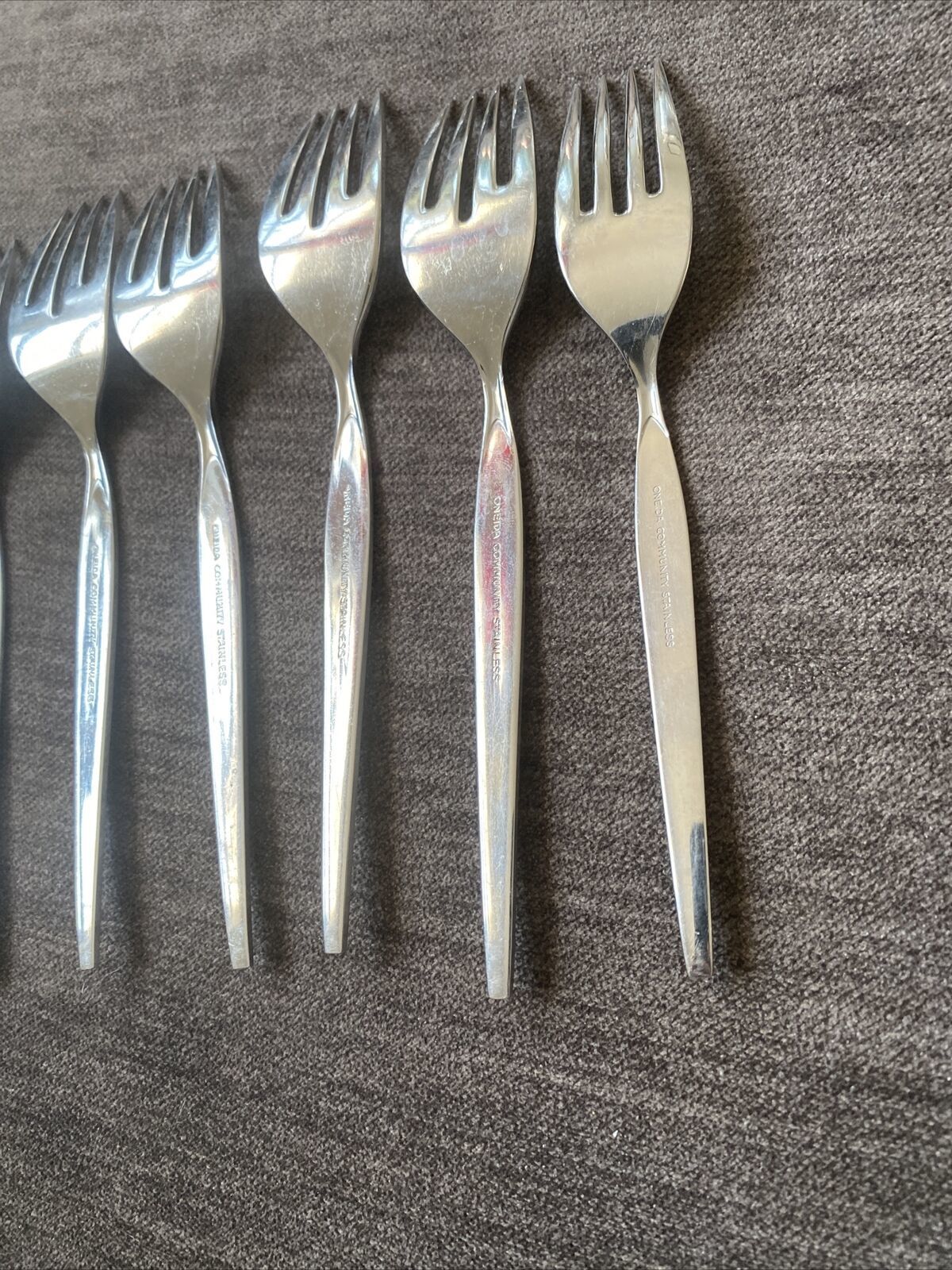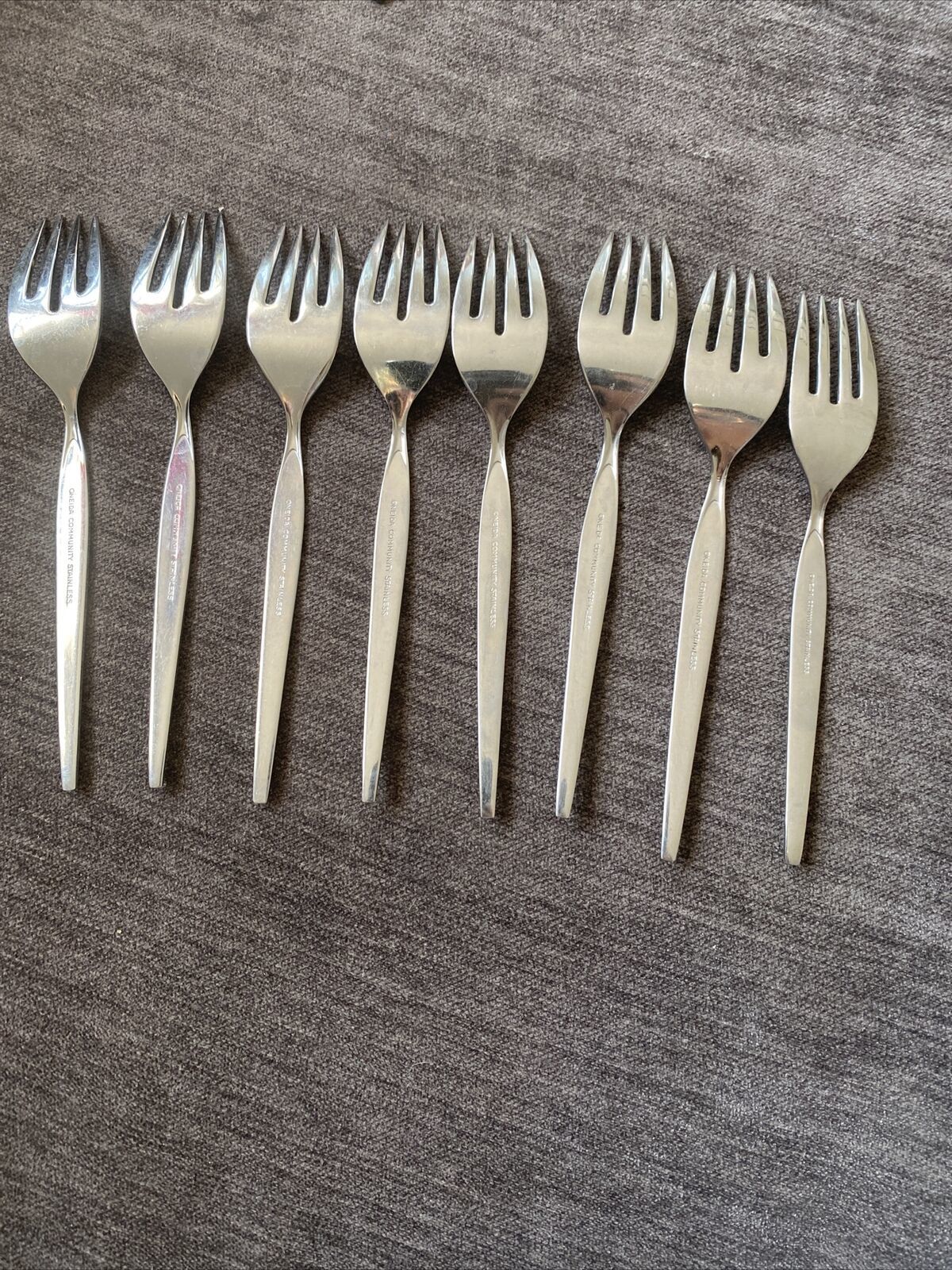 7 ONEIDA COMMUNITY STAINLESS SATINQUE Salad Forks PLUS 1 Smaller Youth Fork