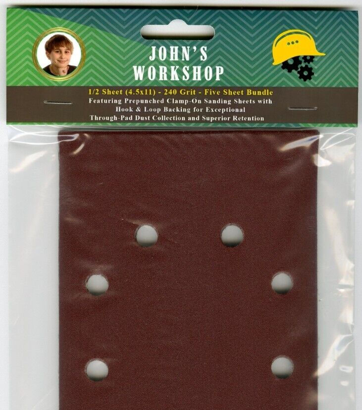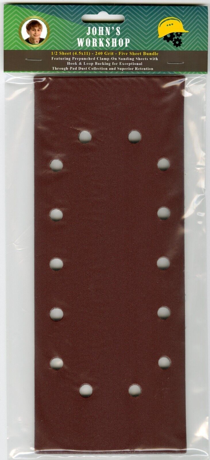 Powertec HS1002 - 1/2 Sheet (4.5x11") - 240 Grit - PrePunched - 5 Sheet Sandpaper Bundle
