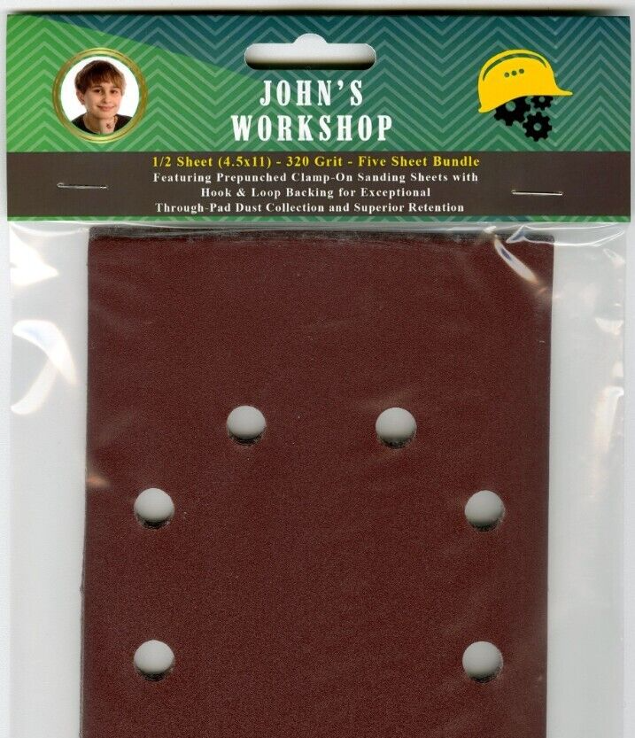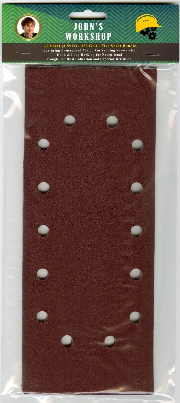 Powertec HS1002 - 1/2 Sheet (4.5x11") - 320 Grit - PrePunched - 5 Sheet Sandpaper Bundle