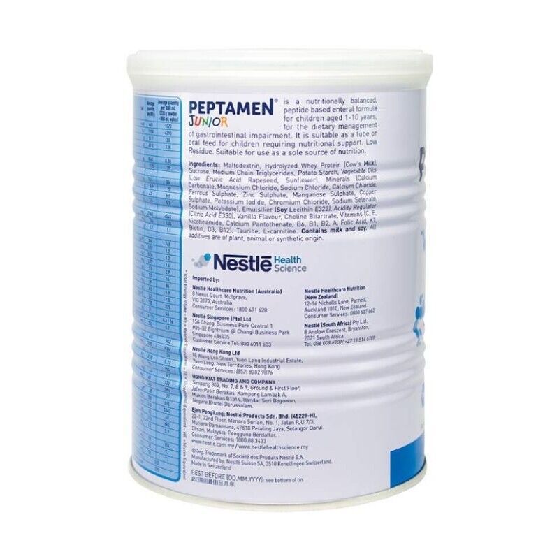 8 x 400g Nestle Health Science PEPTAMEN JUNIOR Complete Peptide Diet Vanilla Flavor