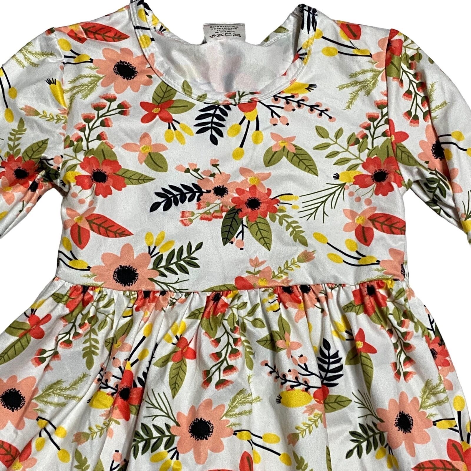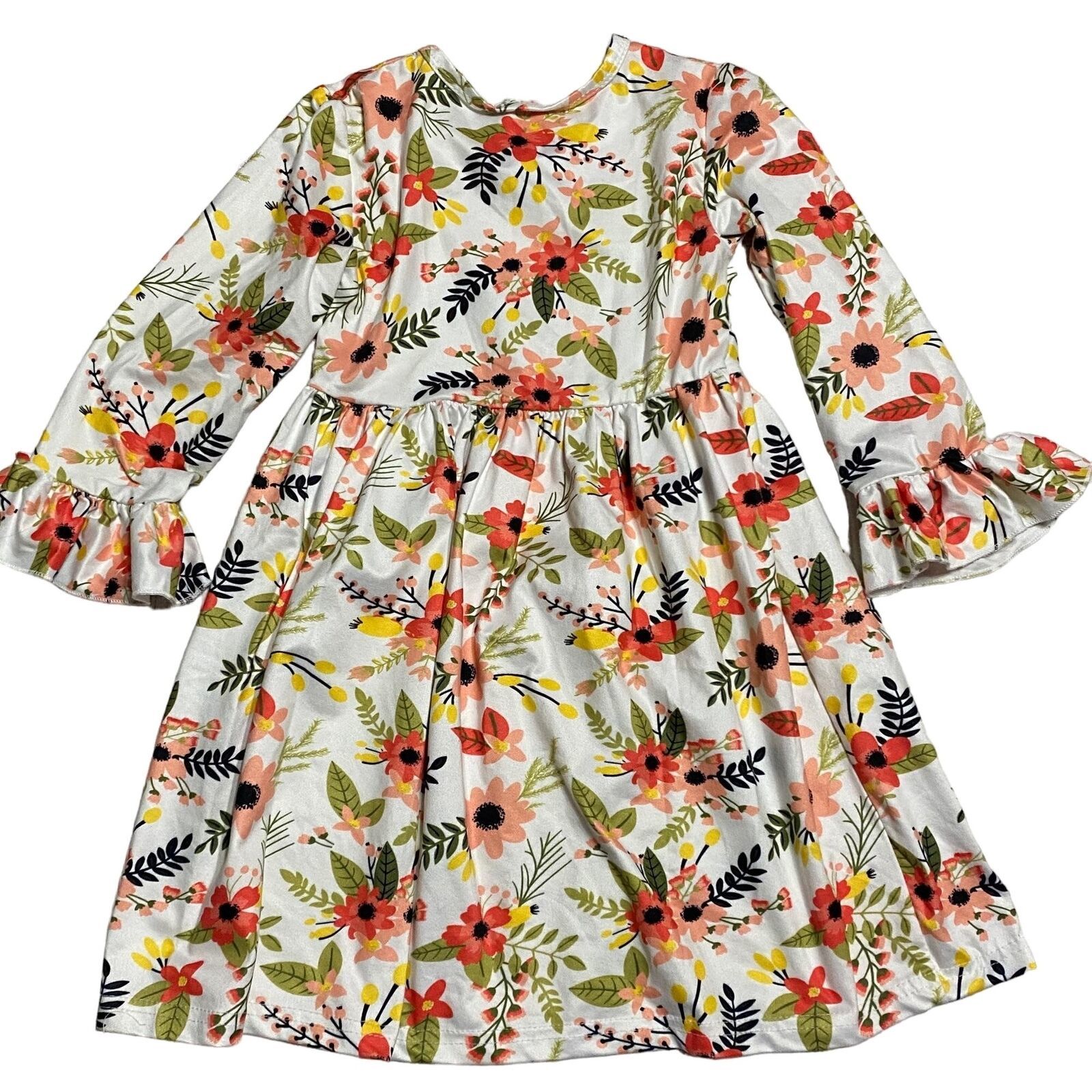 Boutique Fall Floral Dress White/Orange/Yellow Girls Sz 5