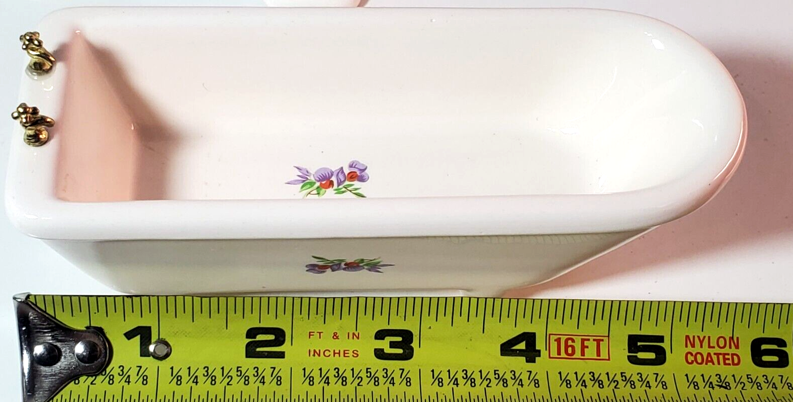 Miniature Dollhouse Bathroom Ceramic 3 Piece Bath Set VTG Tub Sink Toilet Flower