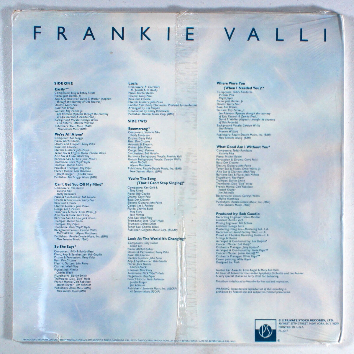 Frankie Valli - Valli (1976) [SEALED] Vinyl LP We're All Alone, Four Seasons