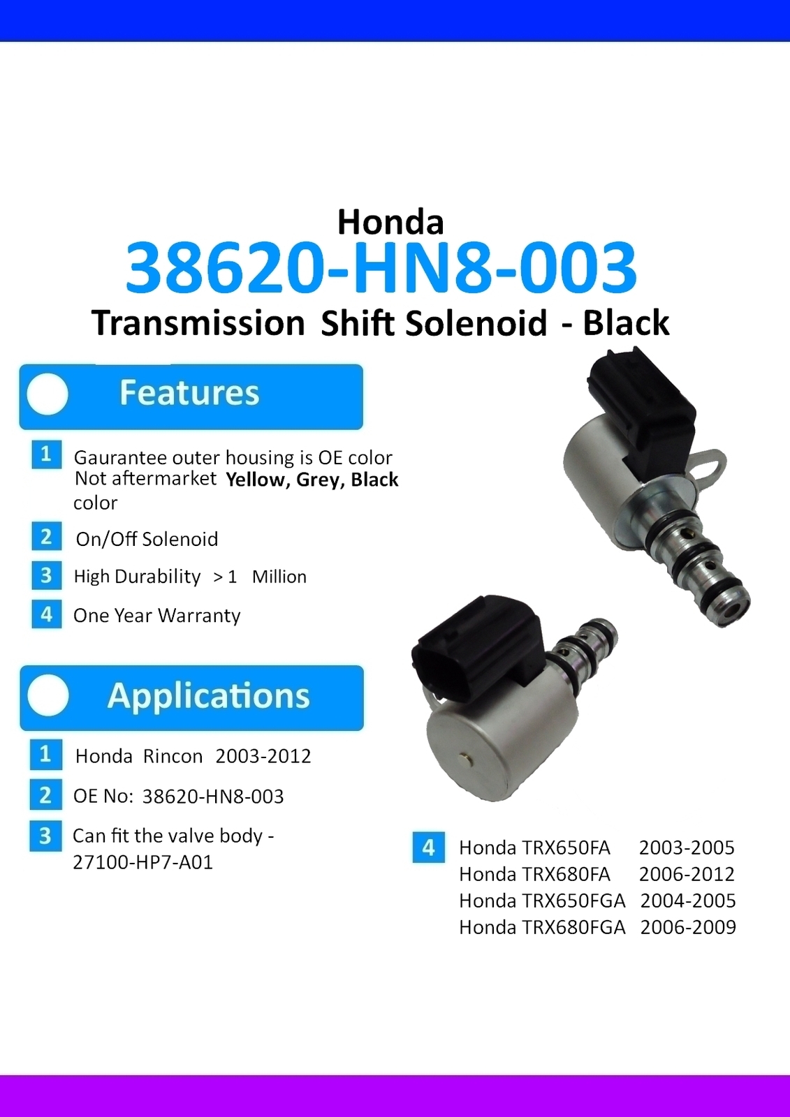 SINS ATV Rincon Transmission Solenoid kit - 38620-HN8-003 38630-HN8-003