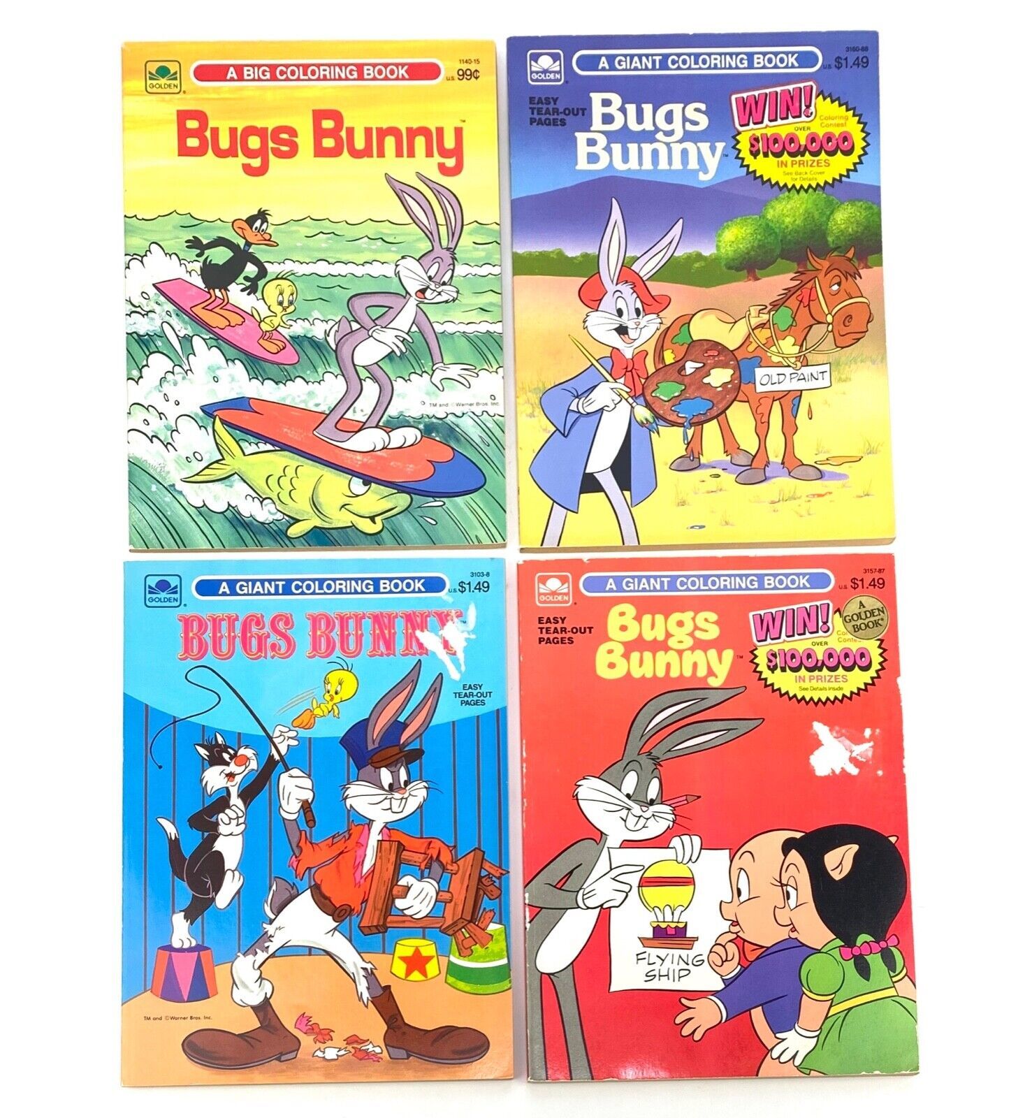 Vintage Golden Coloring Books Bugs Bunny Lot of 4 - 80s Tweety Daffy Porky Taz