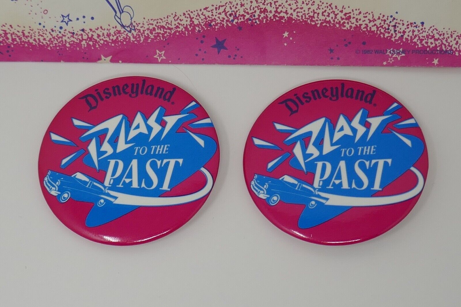 Up for sale is a pair of Disneyland 1988 Blast to the Past Button Pins. These measure approx. 2.25" wide.