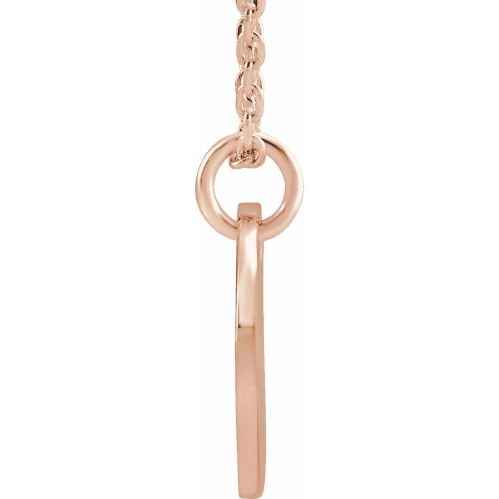 This adorable and stylish round disc with cut-out initial 'A' pendant is crafted of 18K Rose Gold -Plated Sterling Silver and suspends from a matching cable chain that measures 16-18 In ches long. The chain secures with a spring ring clasp.