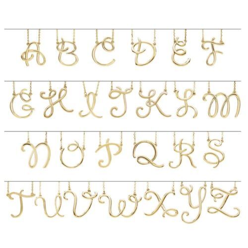 Precious Stars Unisex 14K Yellow Gold Script Font E Initial Necklace