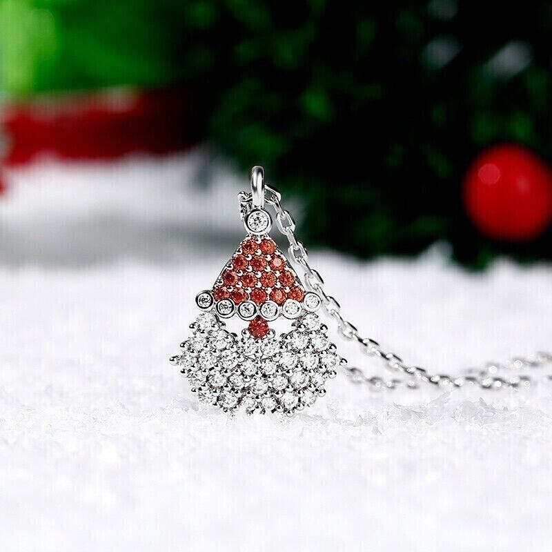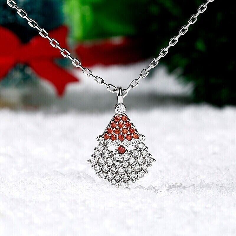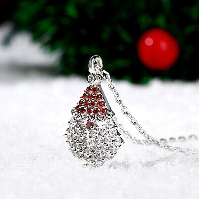 1.20Ct Round Cut CZ Ruby SantaClause Pendant 14K White Gold Plated 18"Free Chain