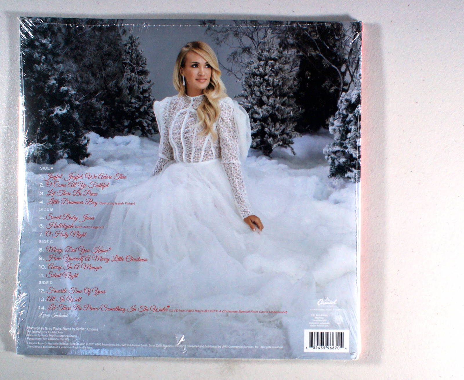My Gift (Special Edition), by Carrie Underwood, features guest appearances from John Legend and Underwood's oldest son Isaiah. The special edition contains three new tracks, including the No. 1 hit Favorite Time of Year, which was previously an Amazon music exclusive. The promotional track Let There Be Peace was released to YouTube ahead of the album. The song peaked at No. 21 on the Billboard Hot Christian Songs chart. Hallelujah was sent to Adult Contemporary radio, and it debuted at No. 28 on Billboard's Adult Contemporary chart for the week ending November 20. The song peaked at No. 1 on the Hot Christian Songs chart, No. 3 on both Adult Contemporary chart and Hot Country Songs chart and at No. 54 on the Billboard Hot 100. The album received two nominations and one win at the 2021 Billboard Music Awards.