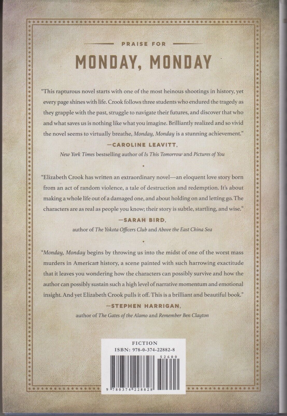 MONDAY, MONDAY (2014) Elizabeth Crook SIGNED - UT Tower Shooting Fiction HC 1st