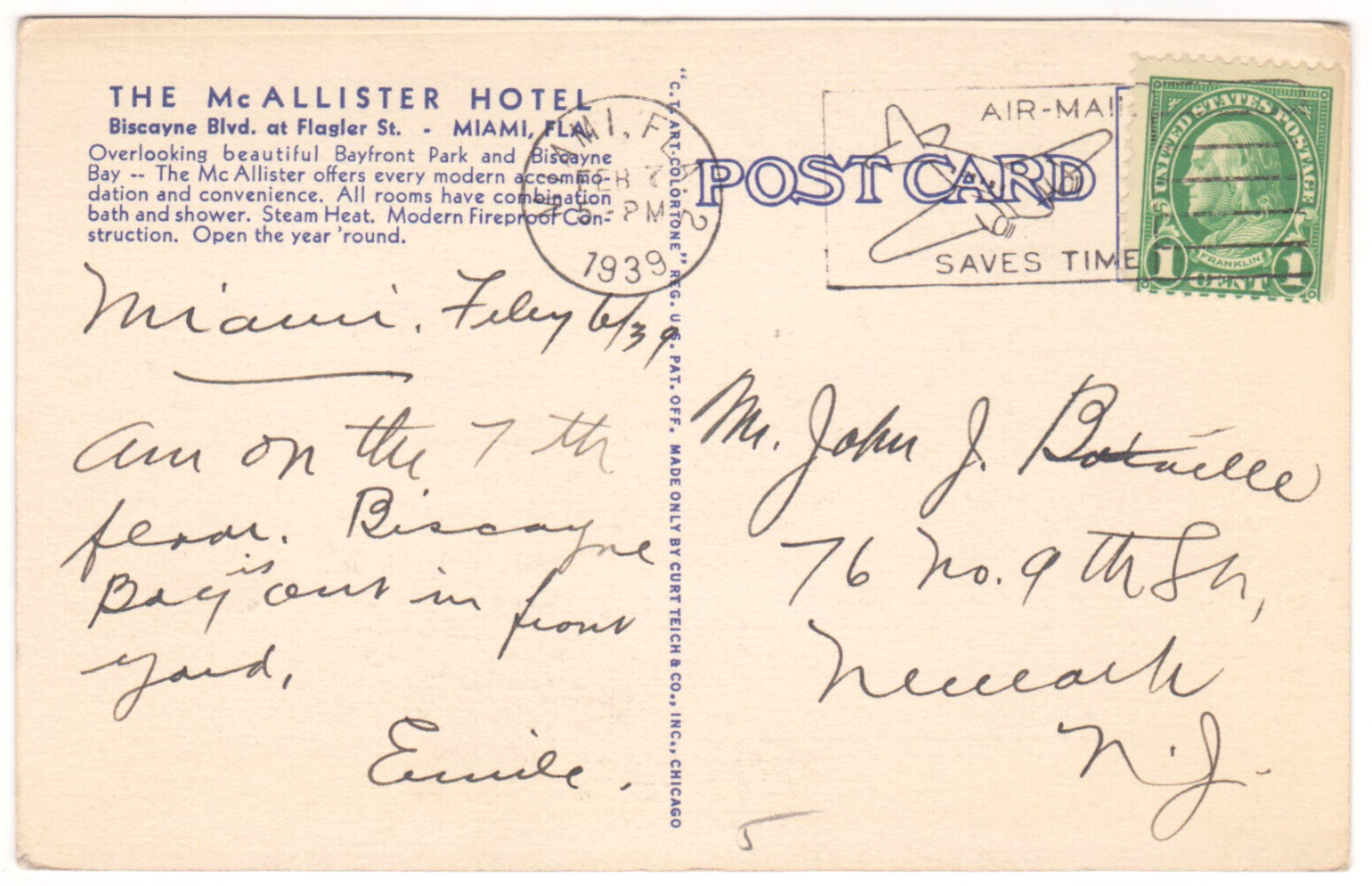 Vtg Postcard-McAllister Hotel-Miami FL-Old and similar items