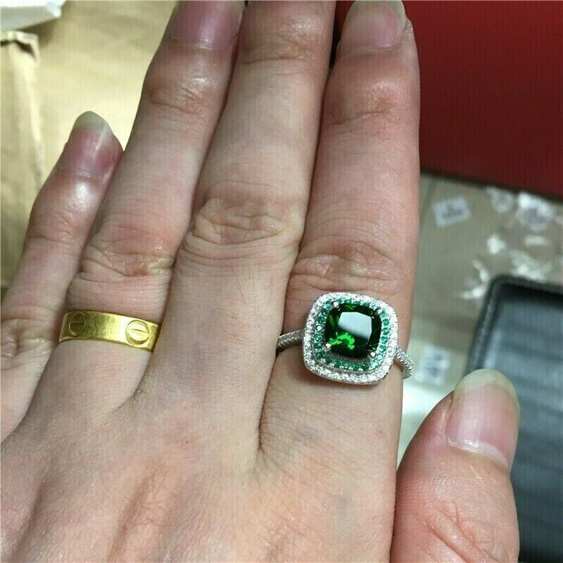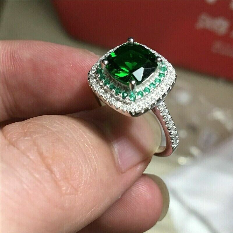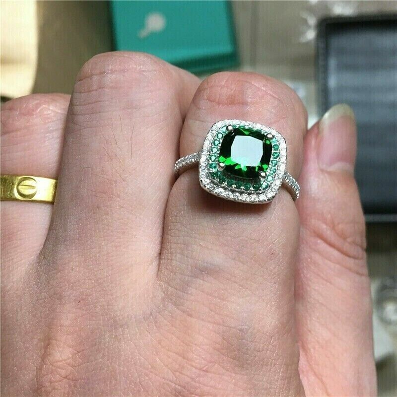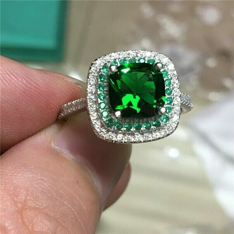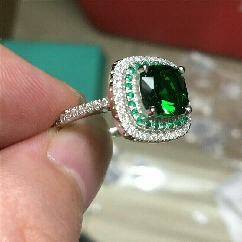 3.20Ct Cushion Cut CZ Green Emerald Halo and similar items