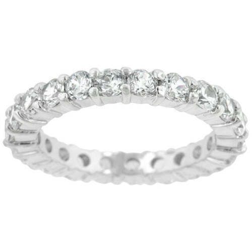 Silvertone Rhodium Plated Brass Round-Cut 3mm Cubic Zirconia Eternity Ring