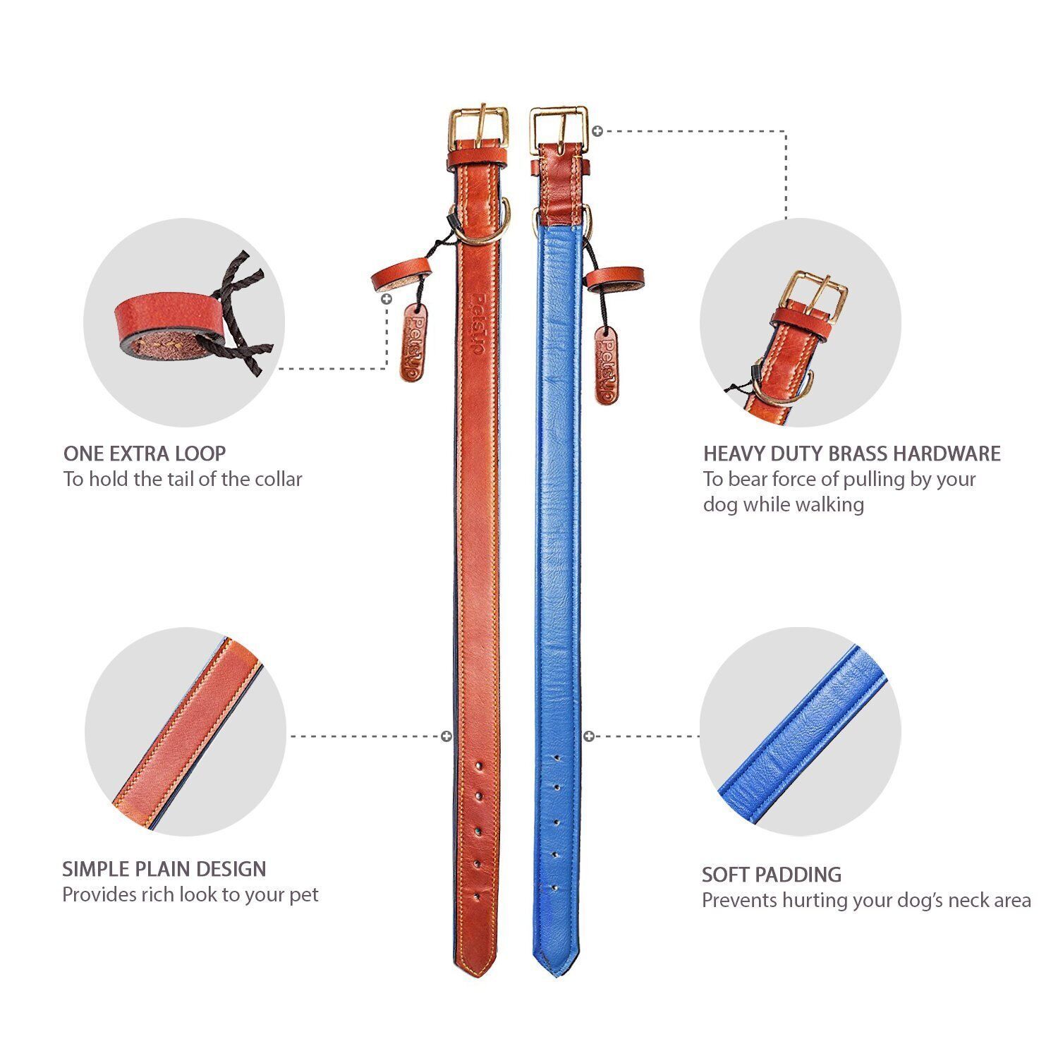 Every collar is handmade and hand stitched - the inside of collar is softly padded and protects your dog's neck from rubbing and irritation. Made for the utmost supreme comfort of your dog. No short cuts taken