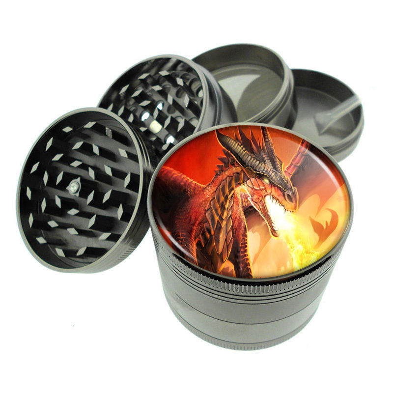 4 piece zinc pleated steel grinder. Contains approx. Twenty-Seven CNC DIAMOND CUT RAZOR SHARP teeth in the main grinding chamber. The stainless steel micro mesh screen only allows to pass through. The image is water proof and will not fade over time. The grinder is a 4 part grinder that has 4 pieces. Double sided magnetic grinding compartment includes a mesh screen that automatically collects as you grind. The bottom compartment can be used to store your ground herb. Great for the kitchen use, to make fresh herbs and spices from your garden.