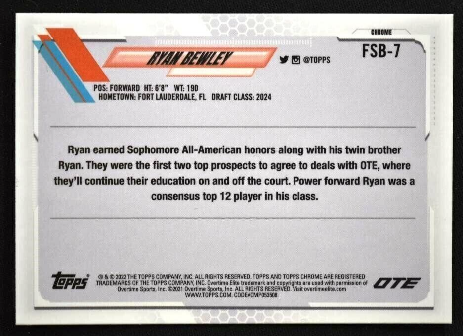 21-22 Ryan Bewley Topps Chrome Overtime Elite Base Future So Bright Variation