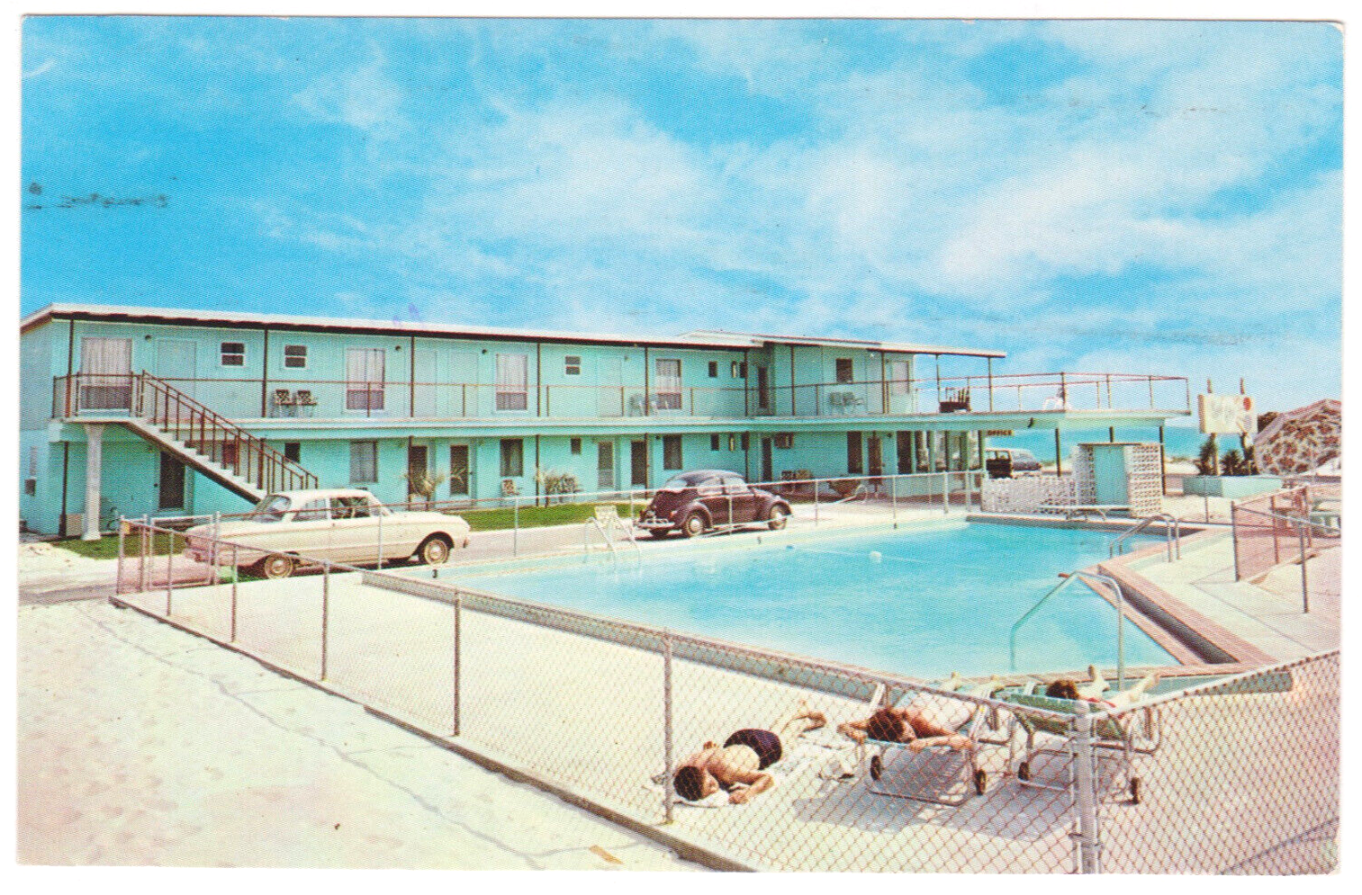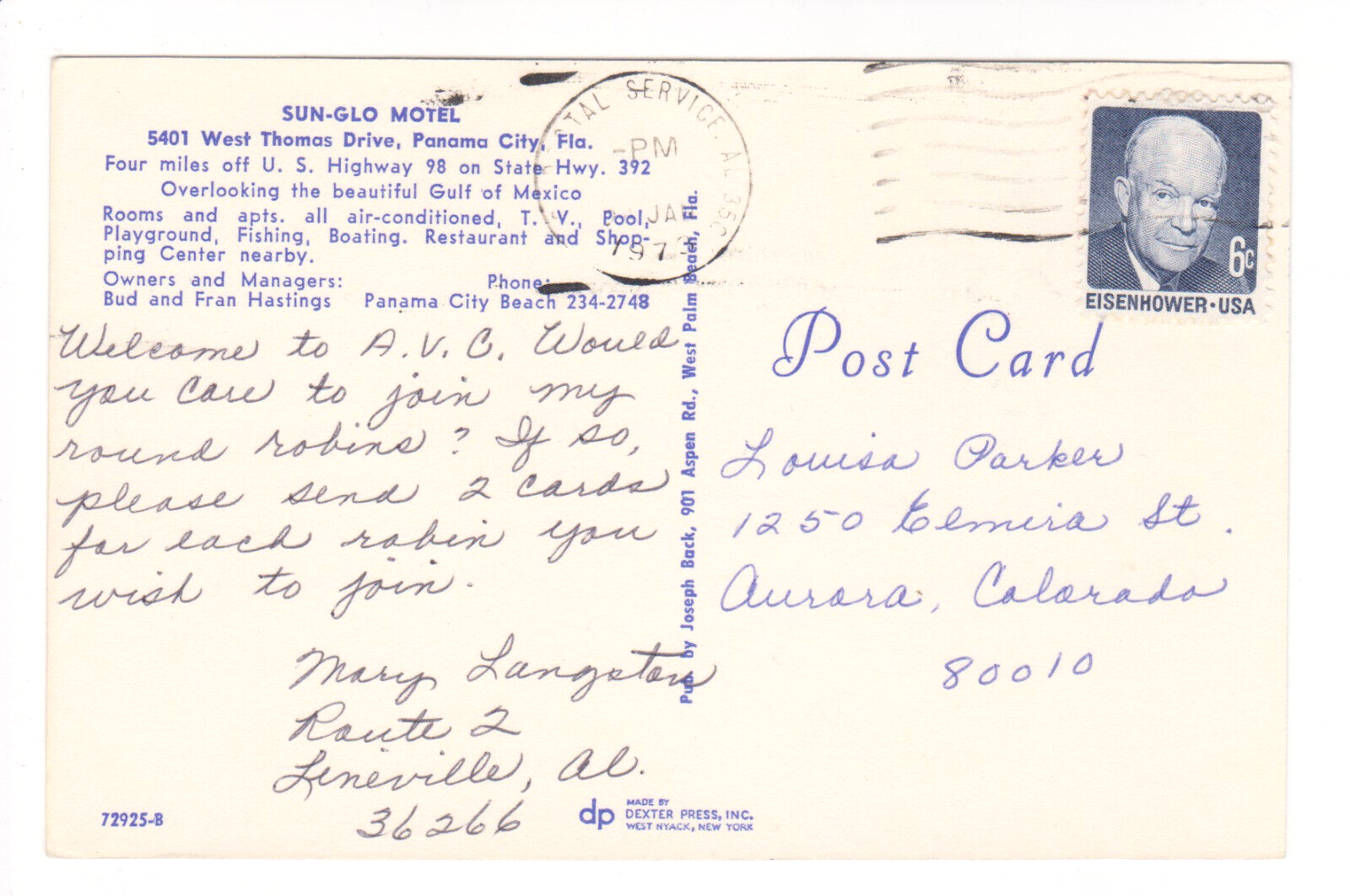 Vtg Postcard-Sun-Glo Motel-Swimming Pool-Panama City FL-Stamp-Chrome-FL2