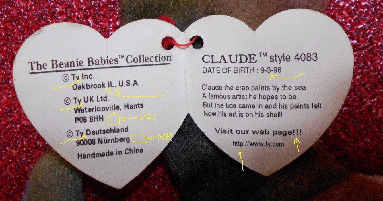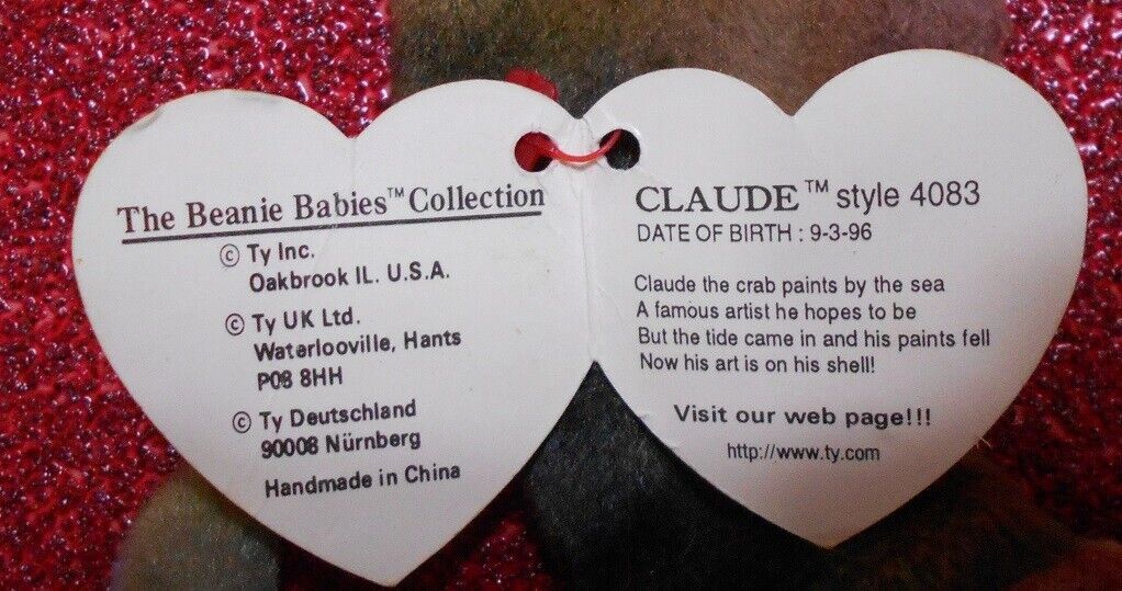 Ty "Claude the Crab" Beanie Baby Unique Color, Rare w/ Tag Errors - READ Listing