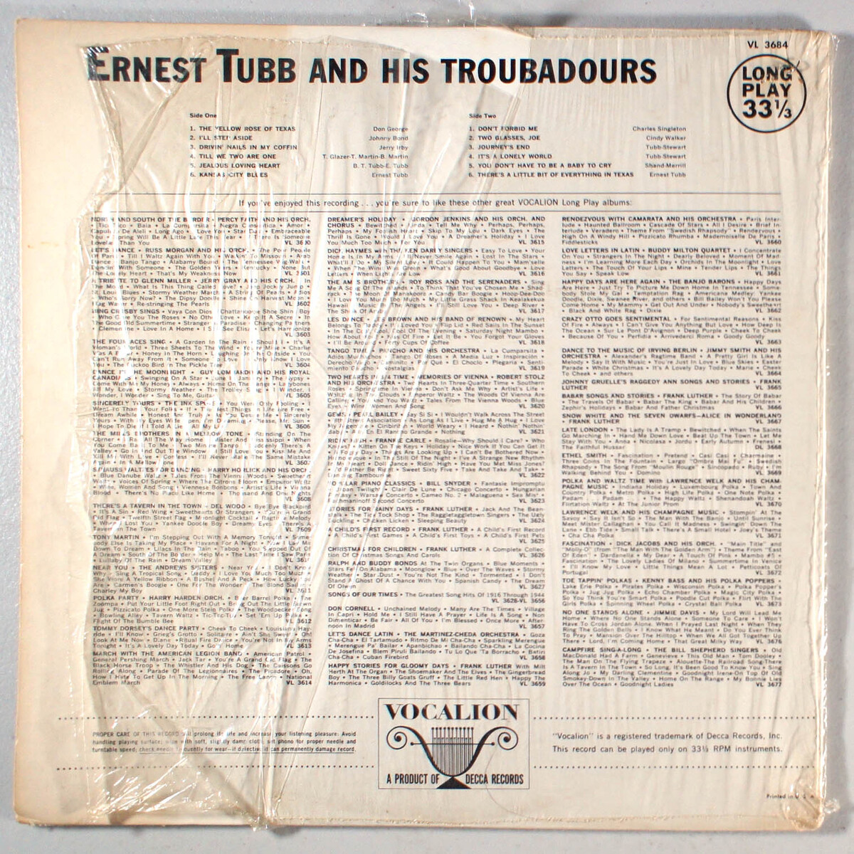 Ernest Tubb - And His Texas Troubadours (1960) Vinyl LP PLAY-GRADED