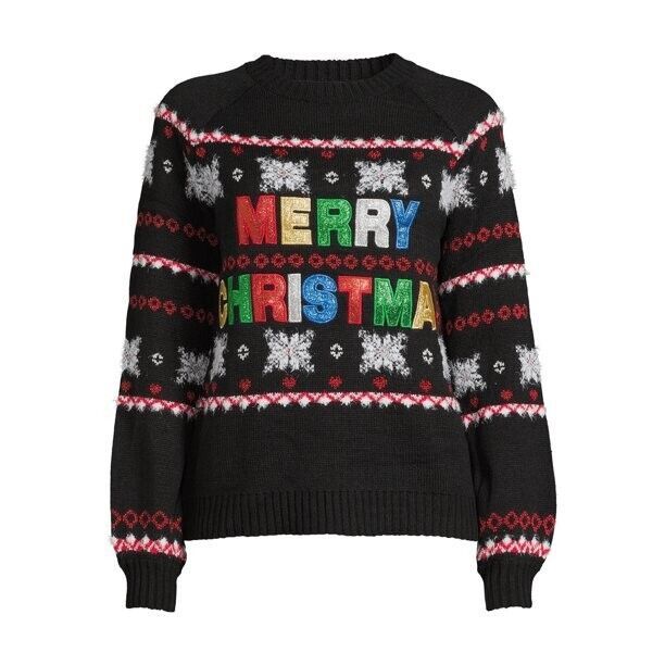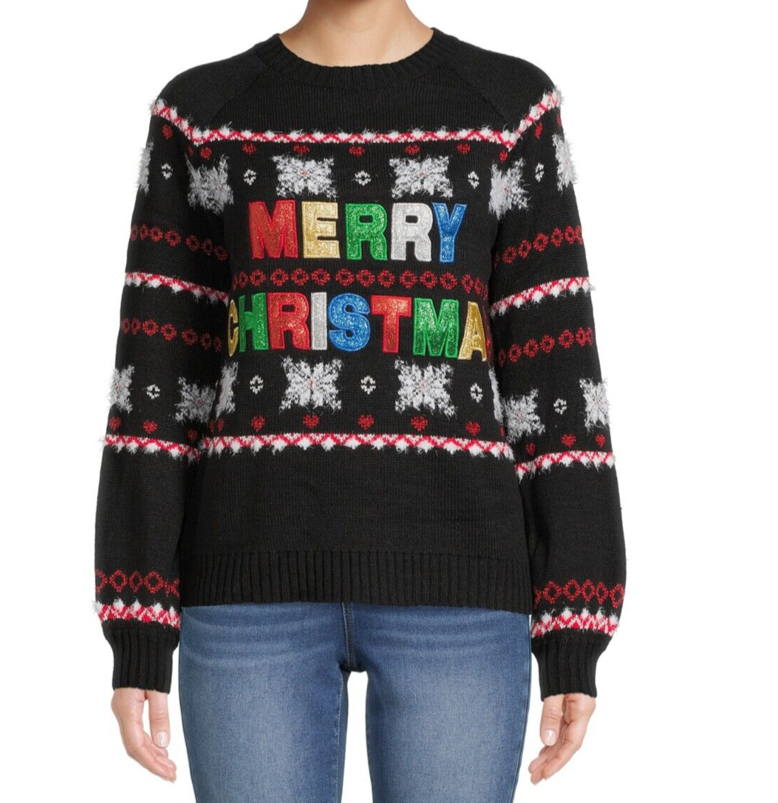 Holiday Time Women's 'Merry Christmas' Holiday Sweater Black Size 3X(24W-26W)