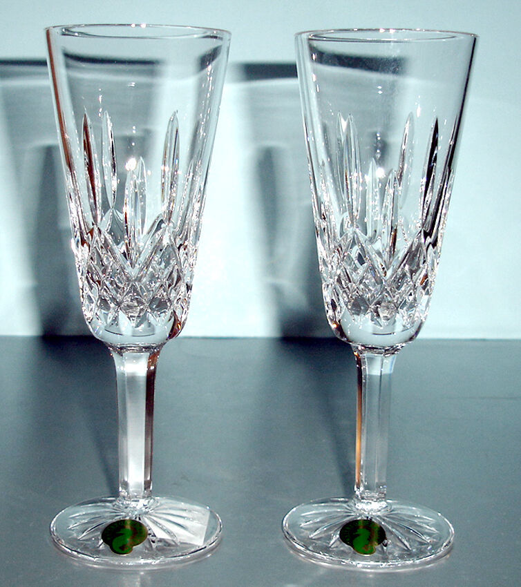 Waterford Lismore Crystal Champagne Flute 2 PC. 60th Anniversary 7.25"H NEW