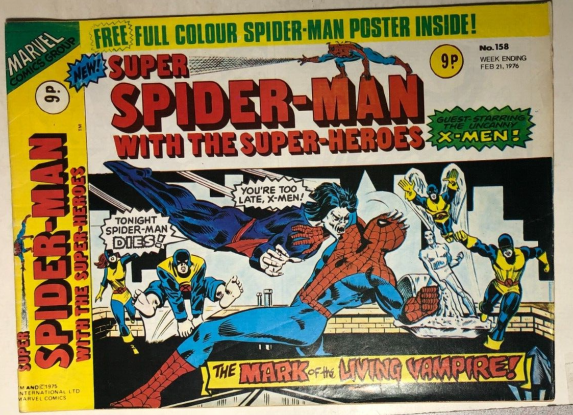 SUPER SPIDER-MAN & SUPER-HEROES #158 (1976) Marvel Comics Morbius X-Men UK FN-