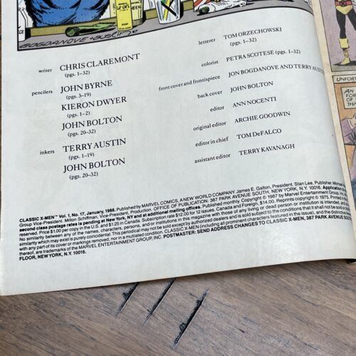 Classic X-Men Vol. 1 No. 17 Jan 1988 Wolverine Marvel Comics Comic Book