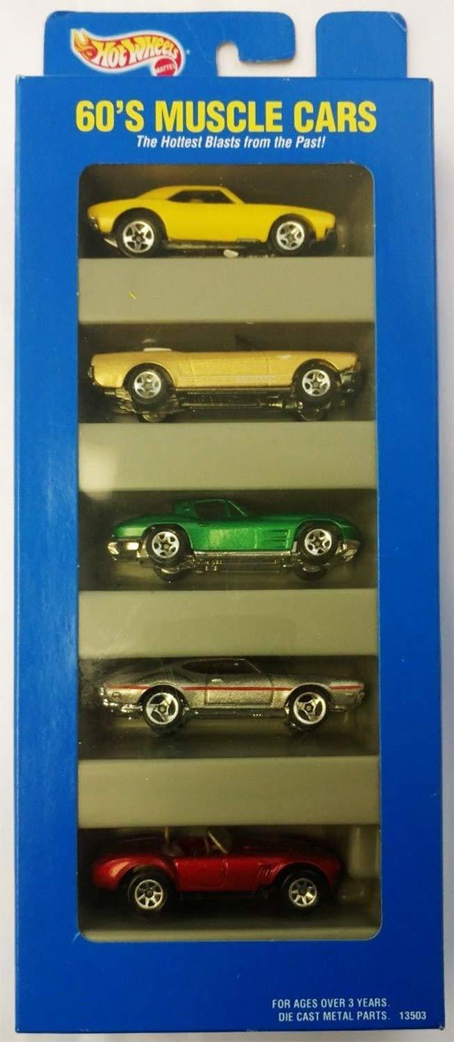 Hot Wheels Gift Pack 60's Muscle Cars: '67 Camaro, '65 Mustang, 1963 Corvette, Old 442 Shelby Cobra.