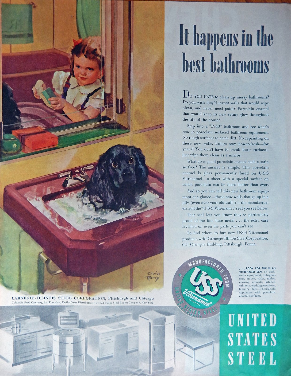 United States Steel, 40's Print ad. Full Page Color Illustration (little girl ba