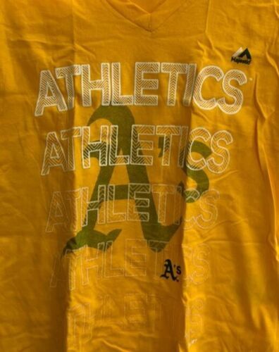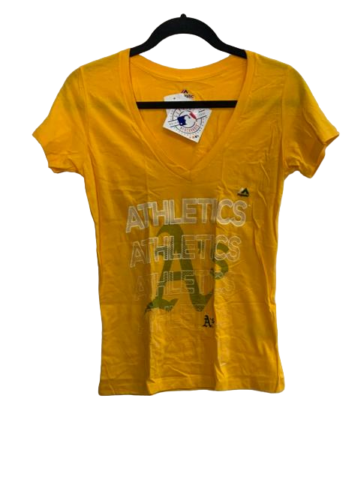 Majestic Women's Oakland Athletics V-Neck Short-Sleeve T-Shirt, Yellow, Medium