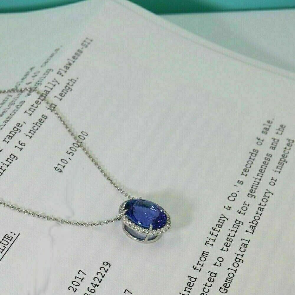 2Ct Oval Cut CZ Tanzanite Halo Pendant 14k White Gold Plated 18" Free Chain