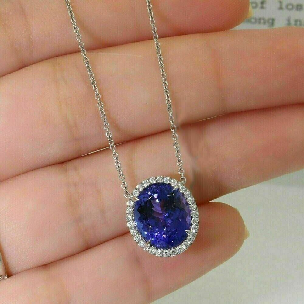2Ct Oval Cut CZ Tanzanite Halo Pendant 14k and similar items
