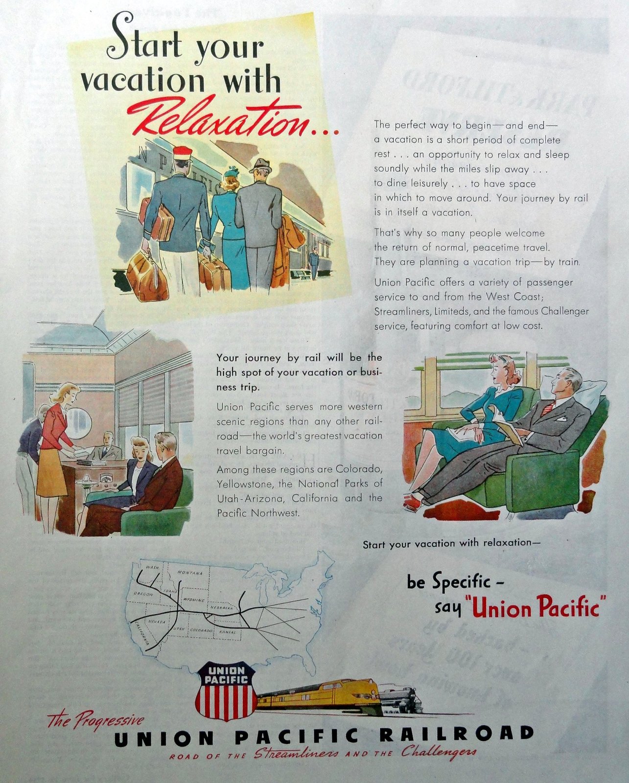 Union Pacific Railroad, Full Page Color print ad. Painting, Illustration (start