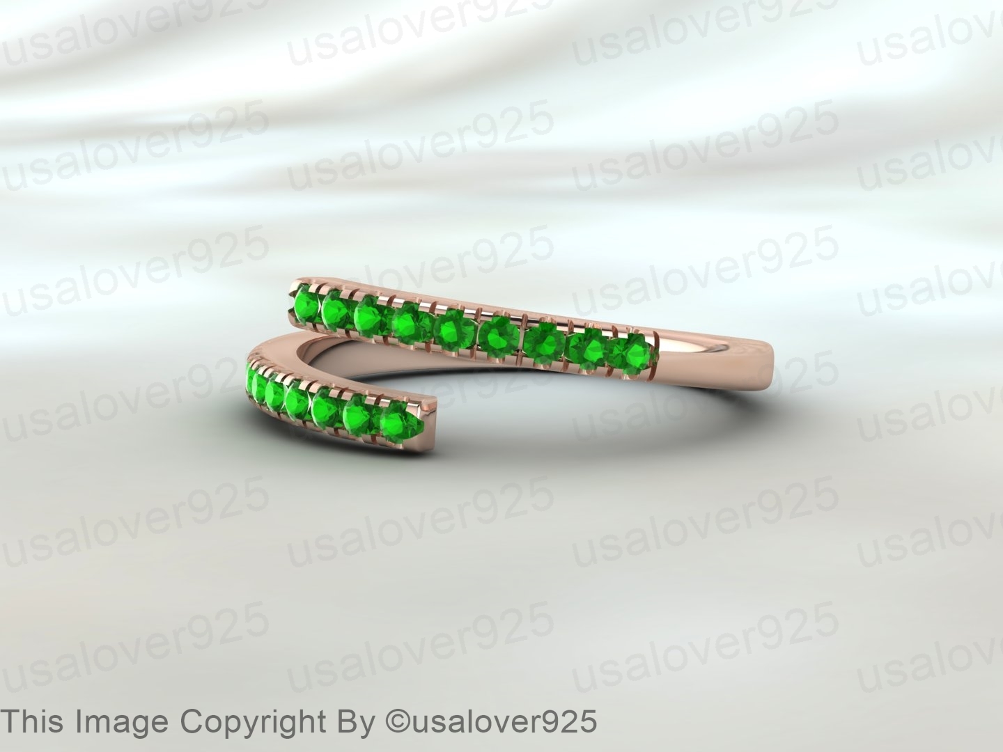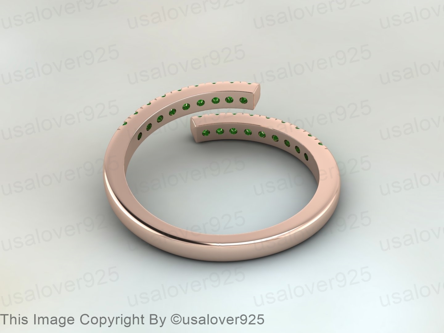 Natural Green Tsavorite Round Gemstone Sterling Silver Women Half Open Band Ring