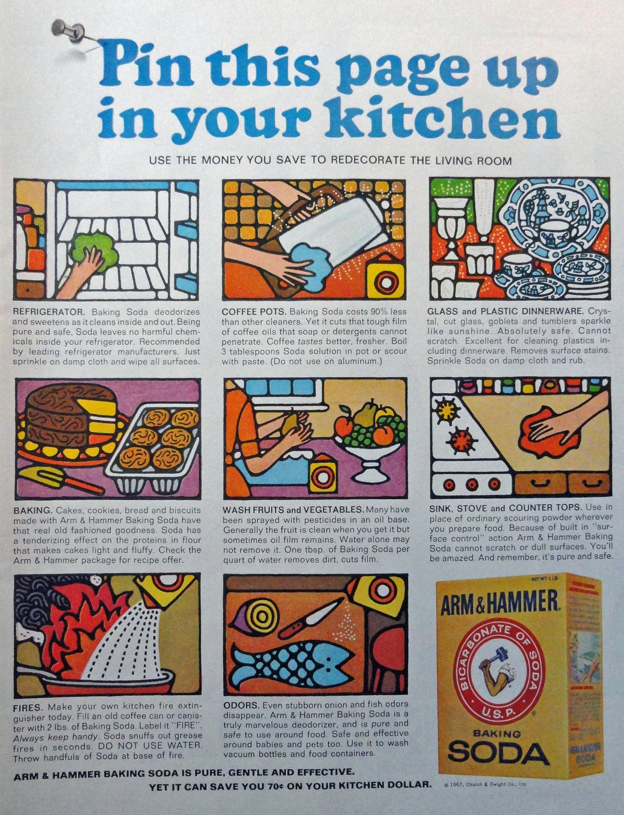 Arm & Hammer Baking Soda, 60's Full Page Color print ad. Illustration, painting