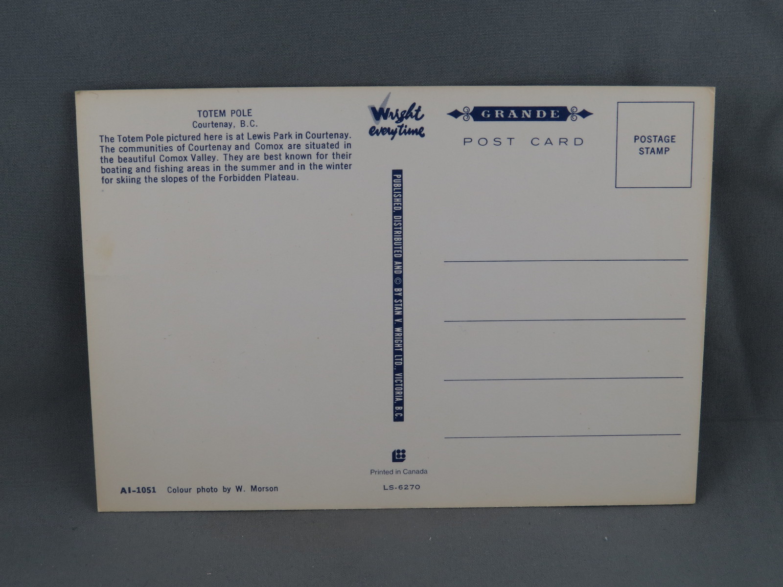 Vintage Postcard - Totem Pole Courtenay Canada - Wright Everytime