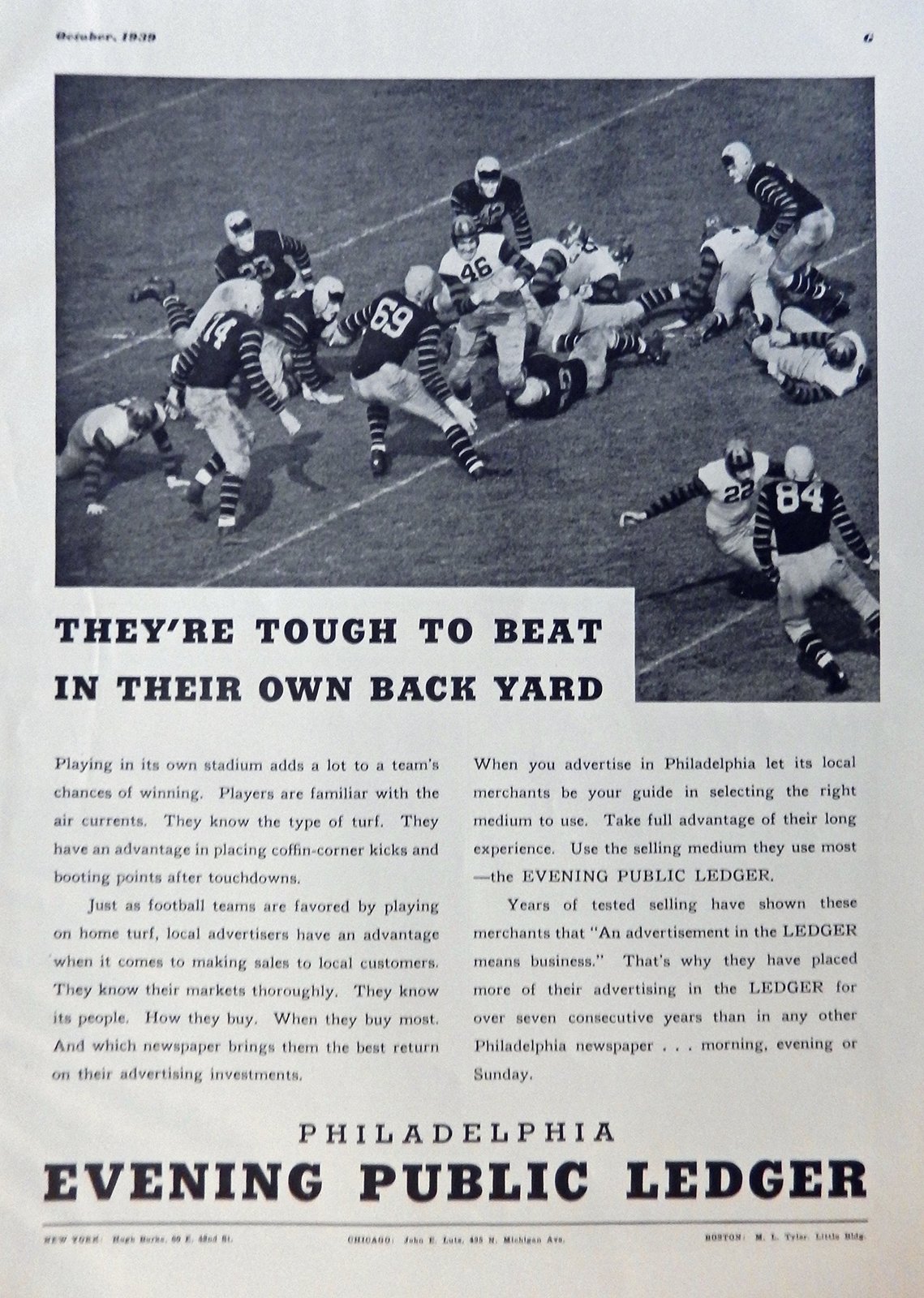 Philadelhia Evening Oublic Ledger, Vintage Print Ad. 30's B&W Illustration (toug