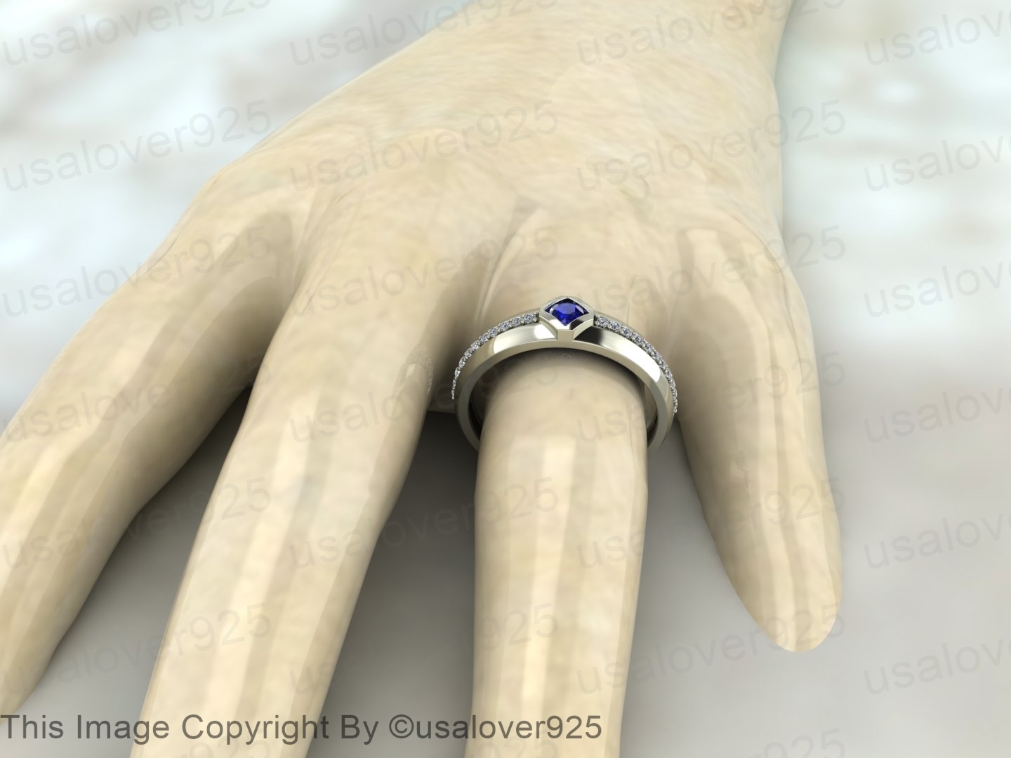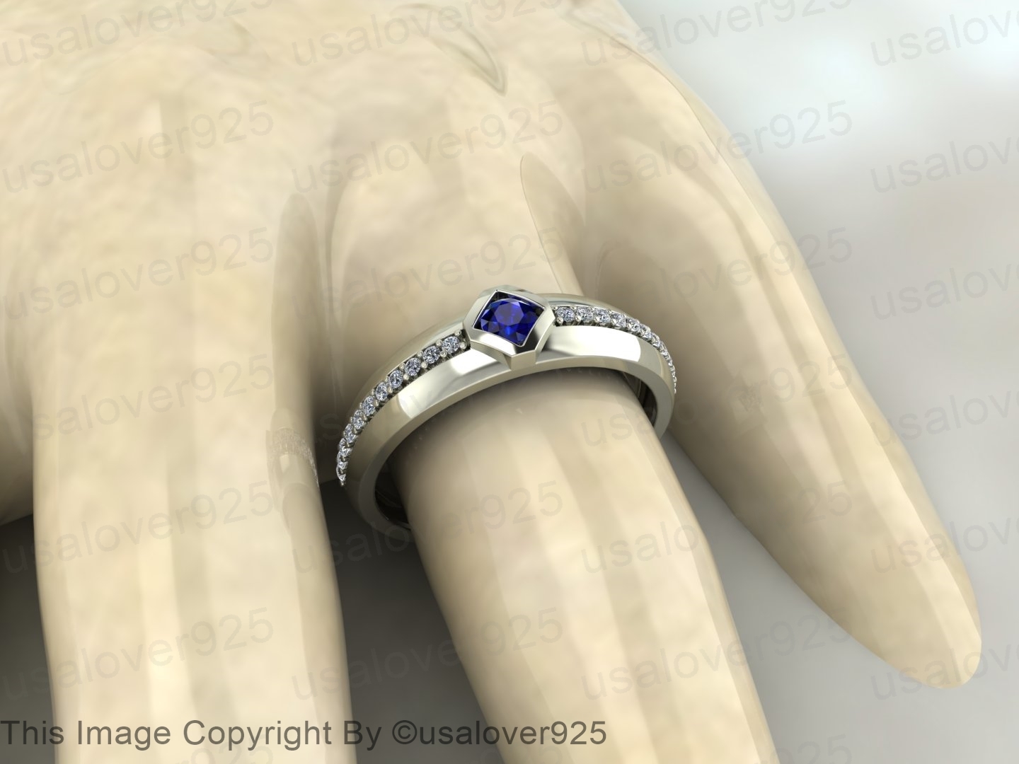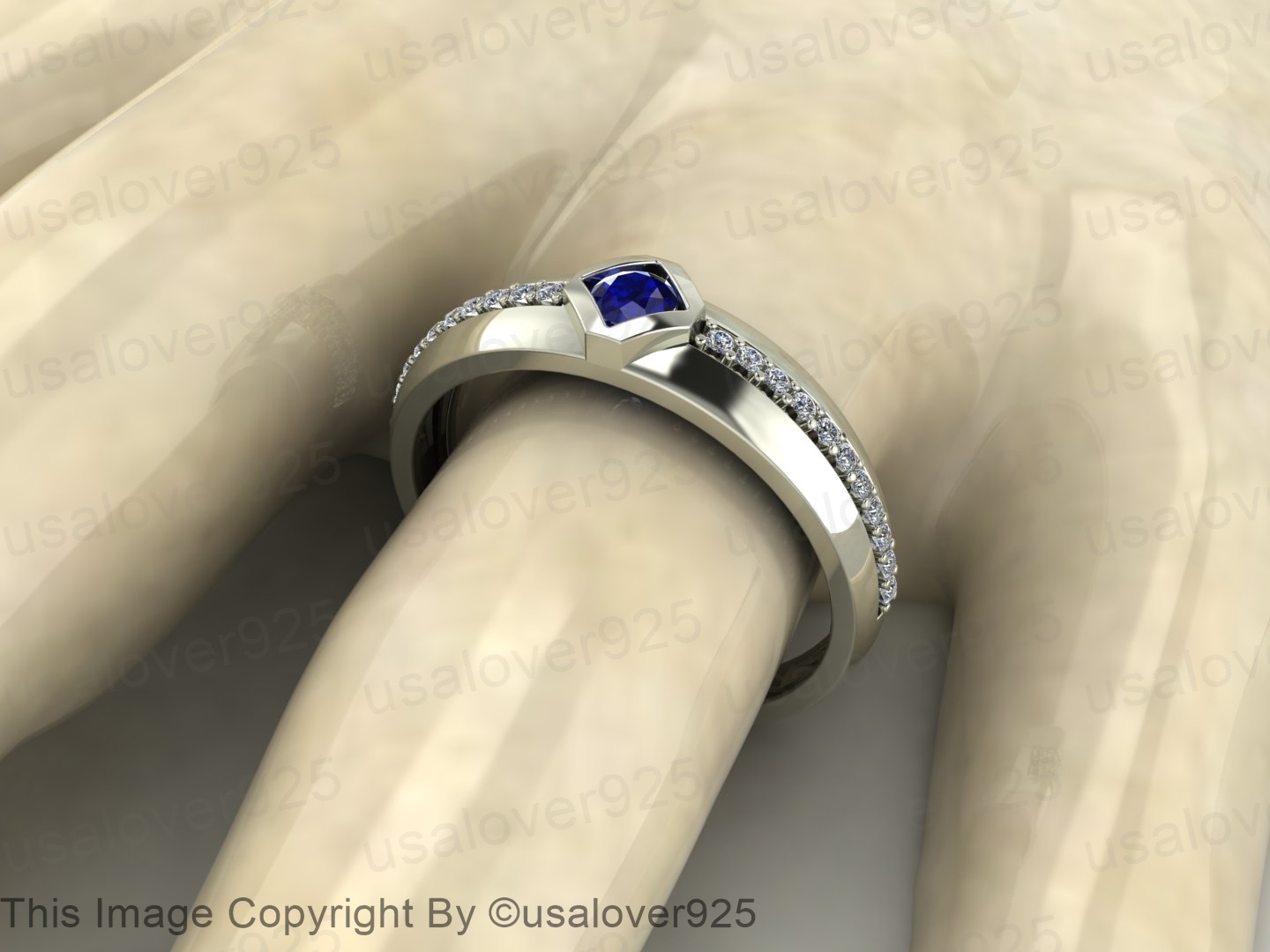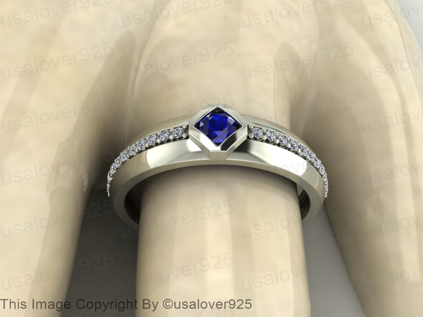Natural Blue Sapphire And CZ Diamond Round and 49 similar items