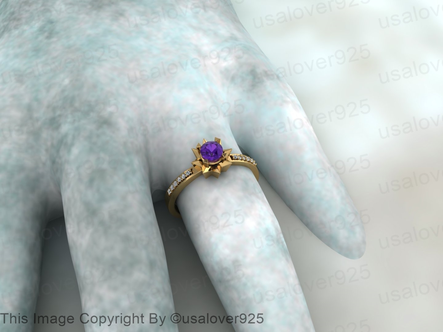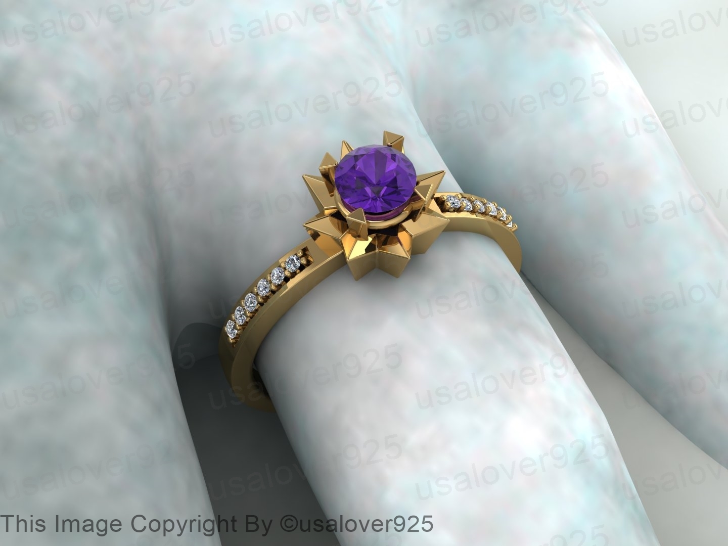 Natural Purple Amethyst And CZ Diamond Gemstone Sterling Silver Women Ring