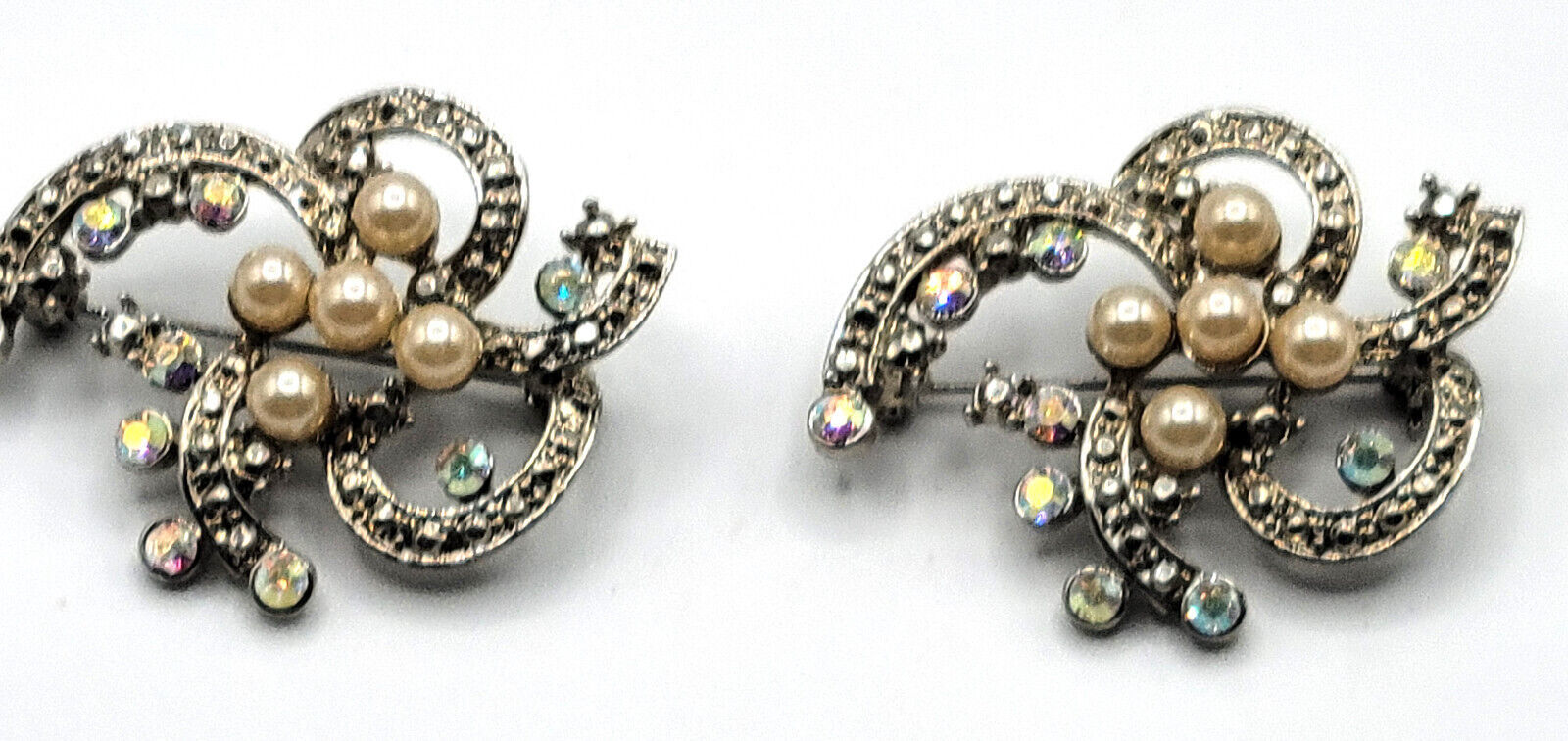 2 Aurora Bora Fantasy Brooch Pin Silver-Tone Metal Fashion Jewelry 1.5"